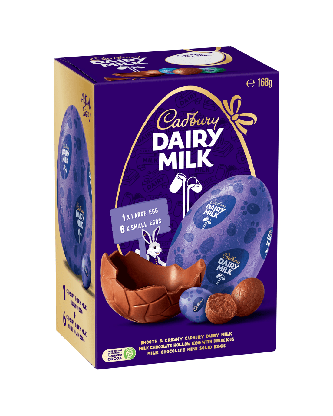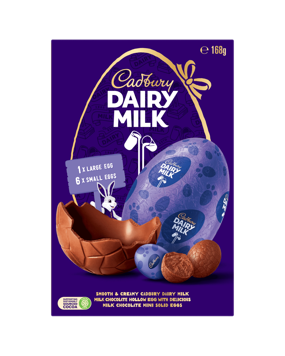 - Includes 1 x 100g Cadbury Dairy Milk milk chocolate easter egg and 9 x 8g Cadbury Dairy milk solid easter eggs