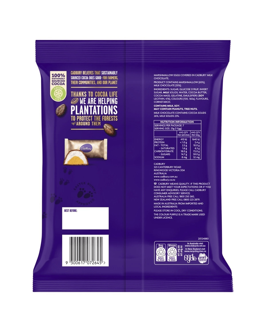 Say goodbye to bland treats and hello to a whole bag of soft, fluffy marshmallow eggs smothered in rich, creamy Cadbury milk chocolate.