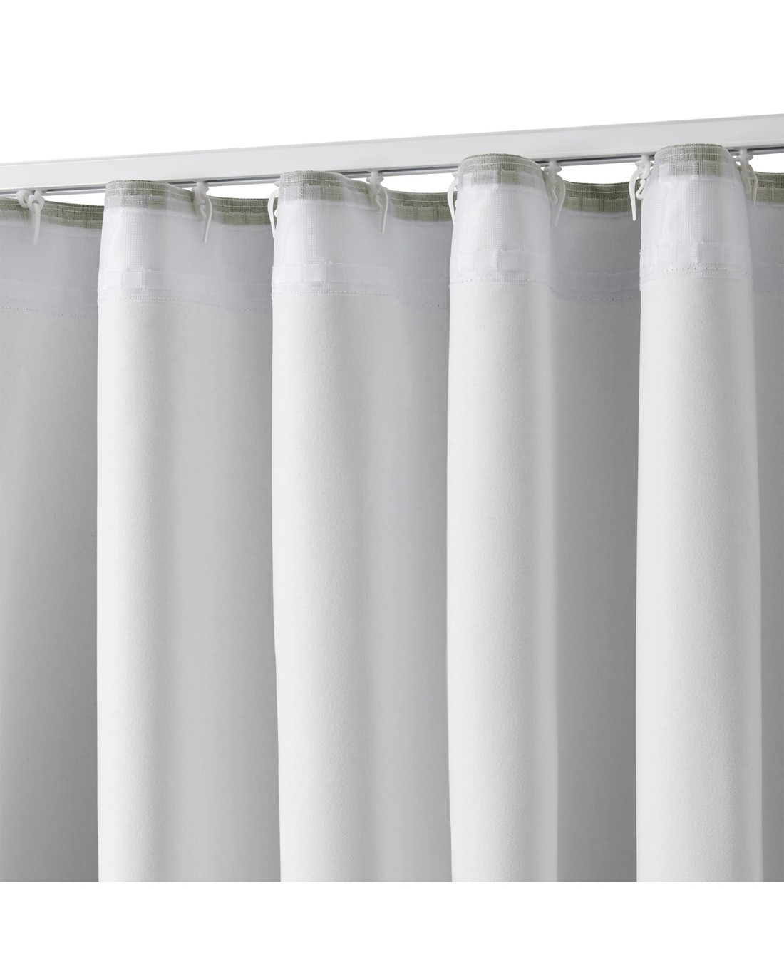 Front: polyester faux linen. Reverse: acrylic coating. S-Fold hooks & track not included.