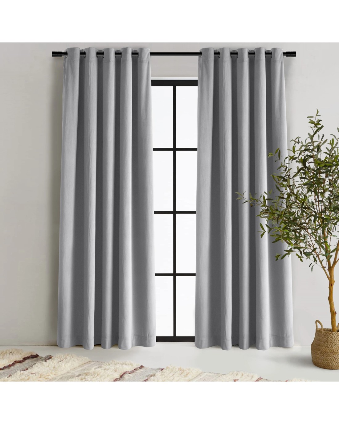 Cadence & Co. Byron Matte Velvet 100% Blockout Eyelet Curtain Twin Pack 225x223cm - Silver