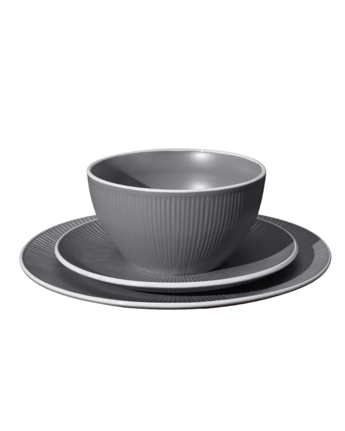Cadence & Co. Maze 12-Piece Ribbed Matte Glaze Dinner Set 4 person - Matte Glaze Grey