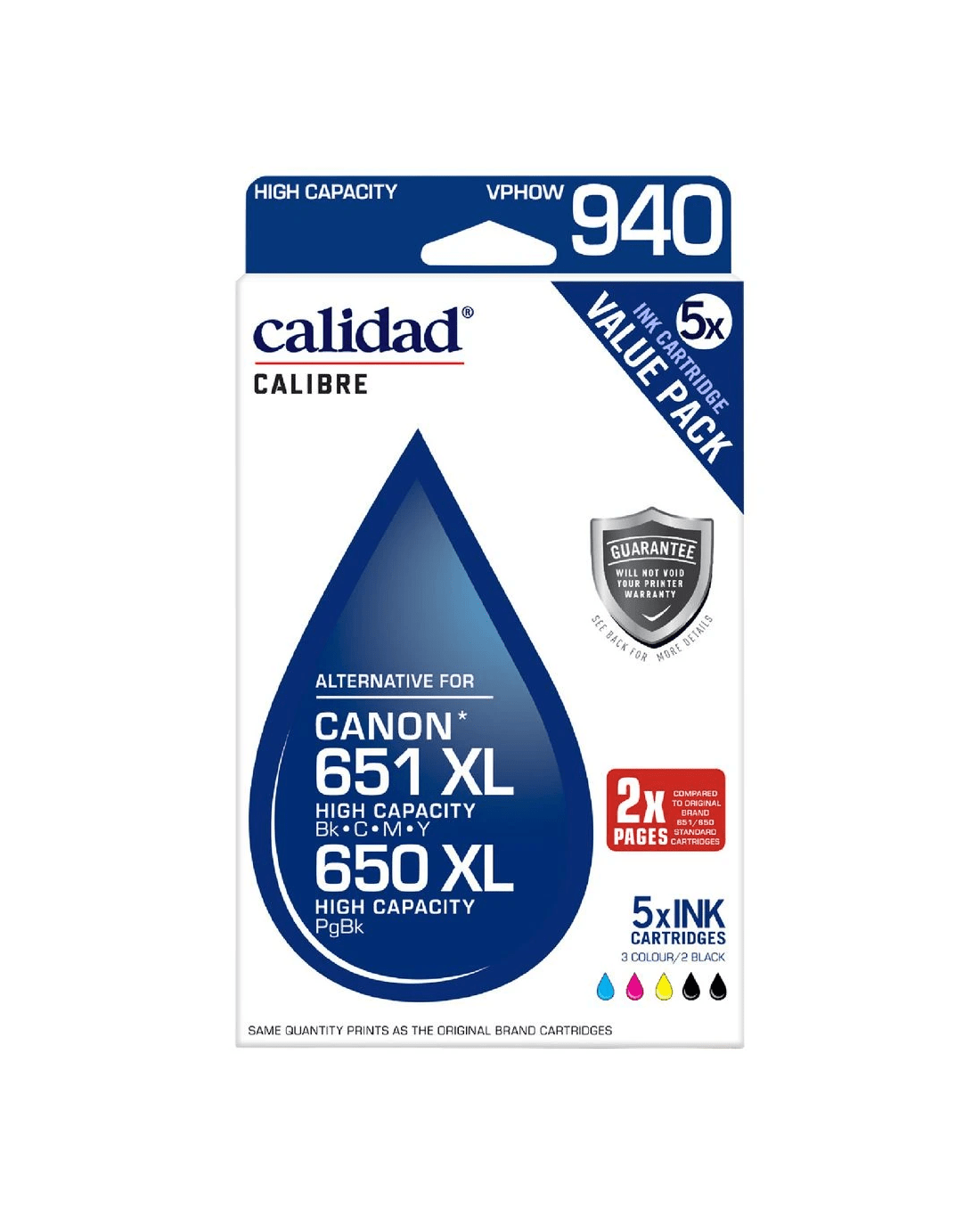 The Calidad Compatible 650 XL/651 XL Ink Cartridge range is formulated specifically for use with your Canon printer to deliver a reliable, cost effective ink solution. It produces clear, crisp printouts with vibrant colours and dark contrast.