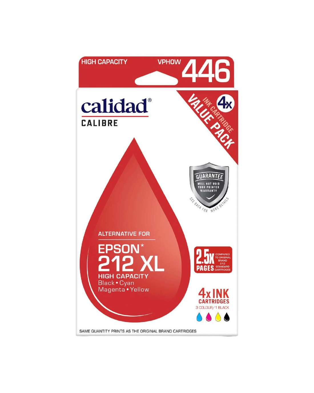 Calidad Epson Ink Cartridges are a reliable alternative to genuine brand inks. They come covered by the Calidad Product and Printer Guarantee and are designed to produce the same page yield as the genuine cartridges. This value pack comes with 4 colours for you to load your printer with.