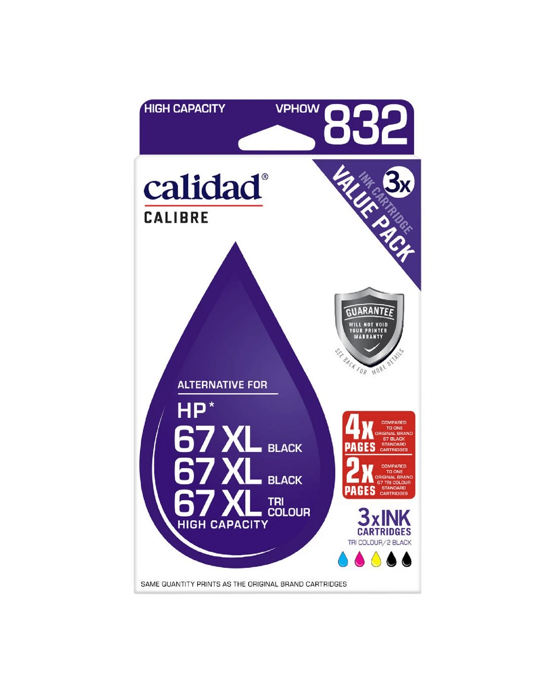 Sold by OfficeworksCalidad HP 67XL Ink Cartridges Black & Tricolour 3 Pack