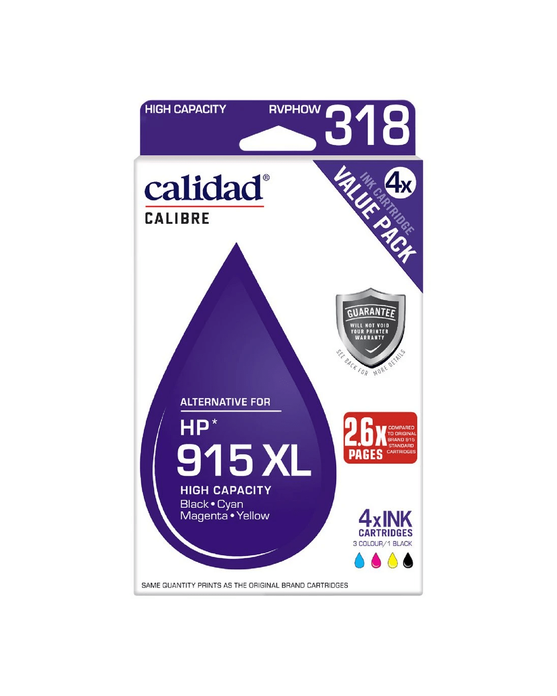 Calidad Calibre cartridges are designed and created under precision manufacturing processes giving an easy-to-use printing solution you can rely on every time and produces vivid, vibrant and rich colour reproductions for photo printing and sharp, black tones for text.