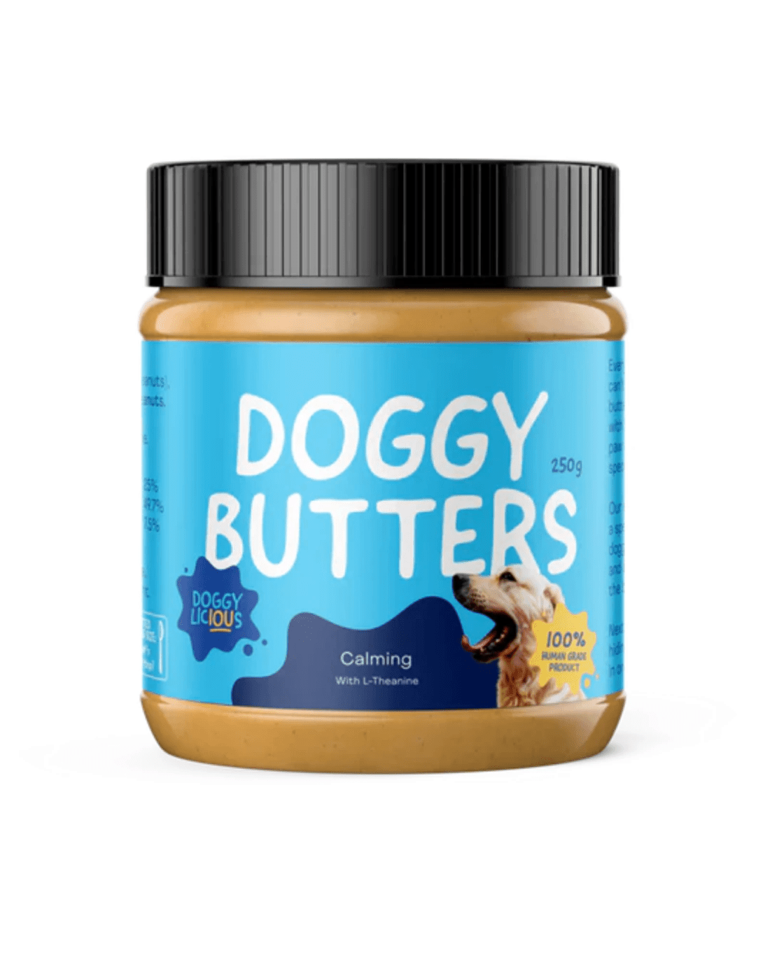 Everyone knows dogs love peanut butter — so we made one just for them! Doggylicious Calming Butter is crafted with care using a special roast, ground to a perfect dog-friendly texture, and made only with the best natural, human-grade ingredients. It contains L-theanine, an amino acid shown to have a calming effect in dogs, helping reduce stress and anxiety naturally.
