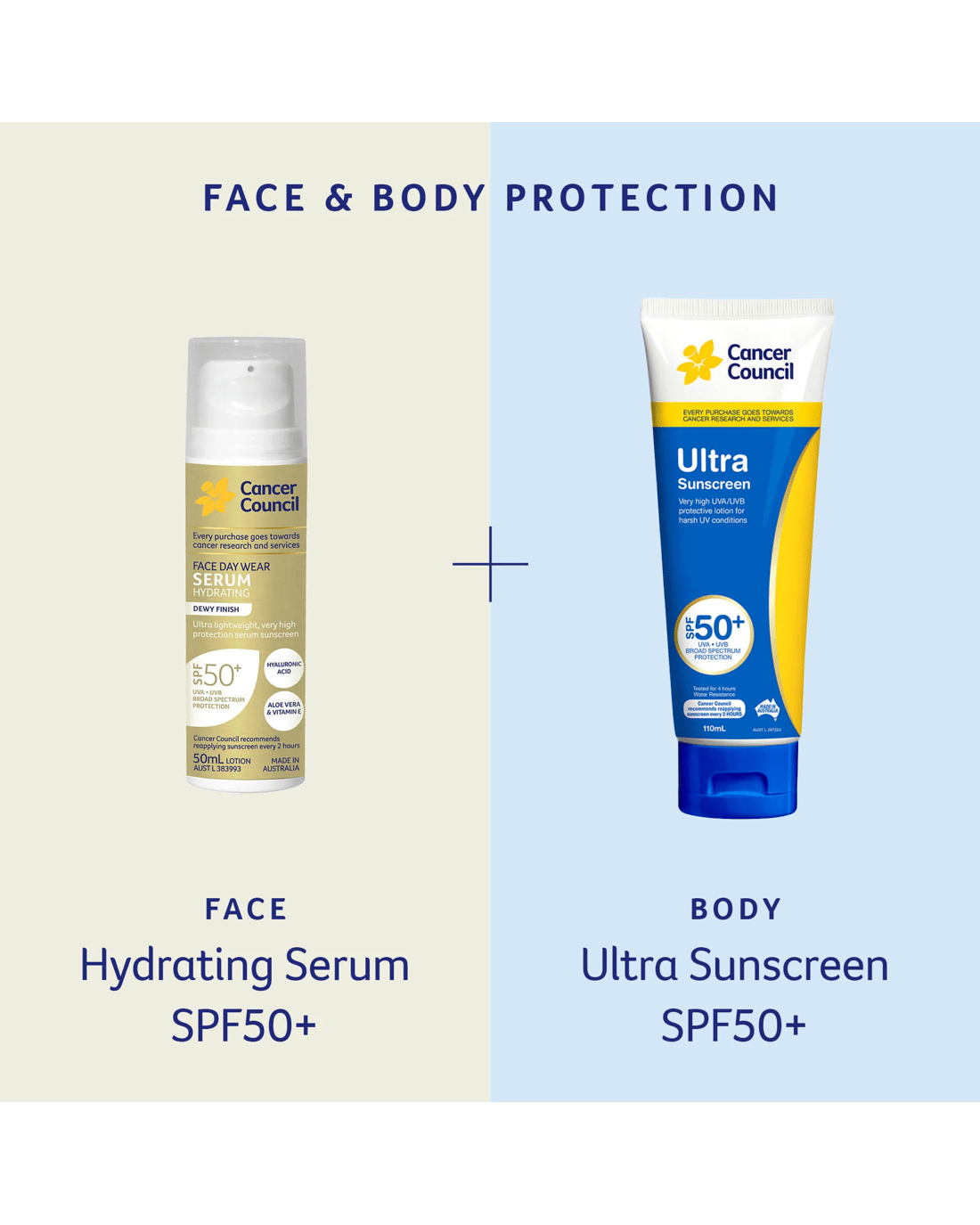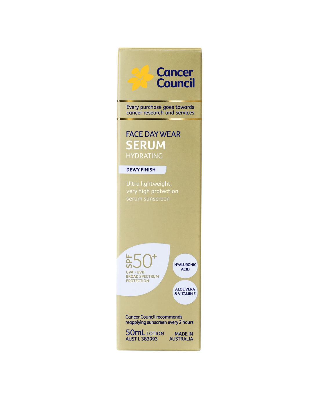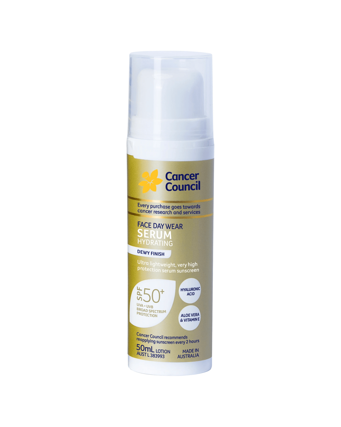 Cancer Council SPF50+ Face Day Wear Hydrating Serum 50ml - Hyaluronic Acid, Aloe Vera and Vitamin E