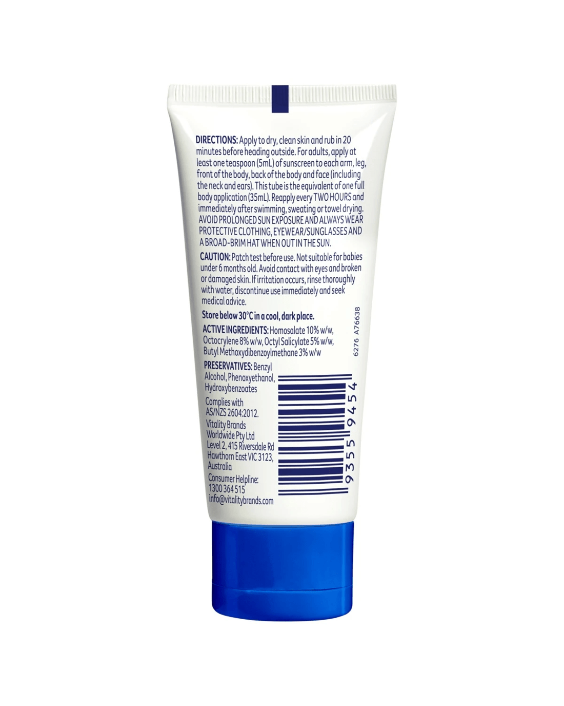 • Note: To ensure adequate protection, Cancer Council recommends all sunscreens be re-applied every 2 hours or immediately after swimming, sweating or towel drying. Store below 30 deg. C. in a cool, dark place.