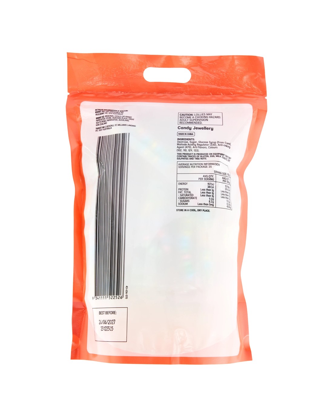 Caution: Lollies may become a choking hazard. Adult supervision recommended.