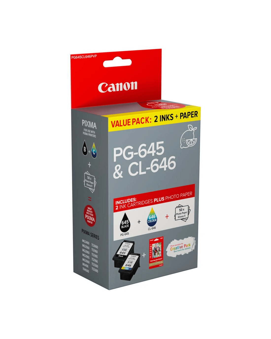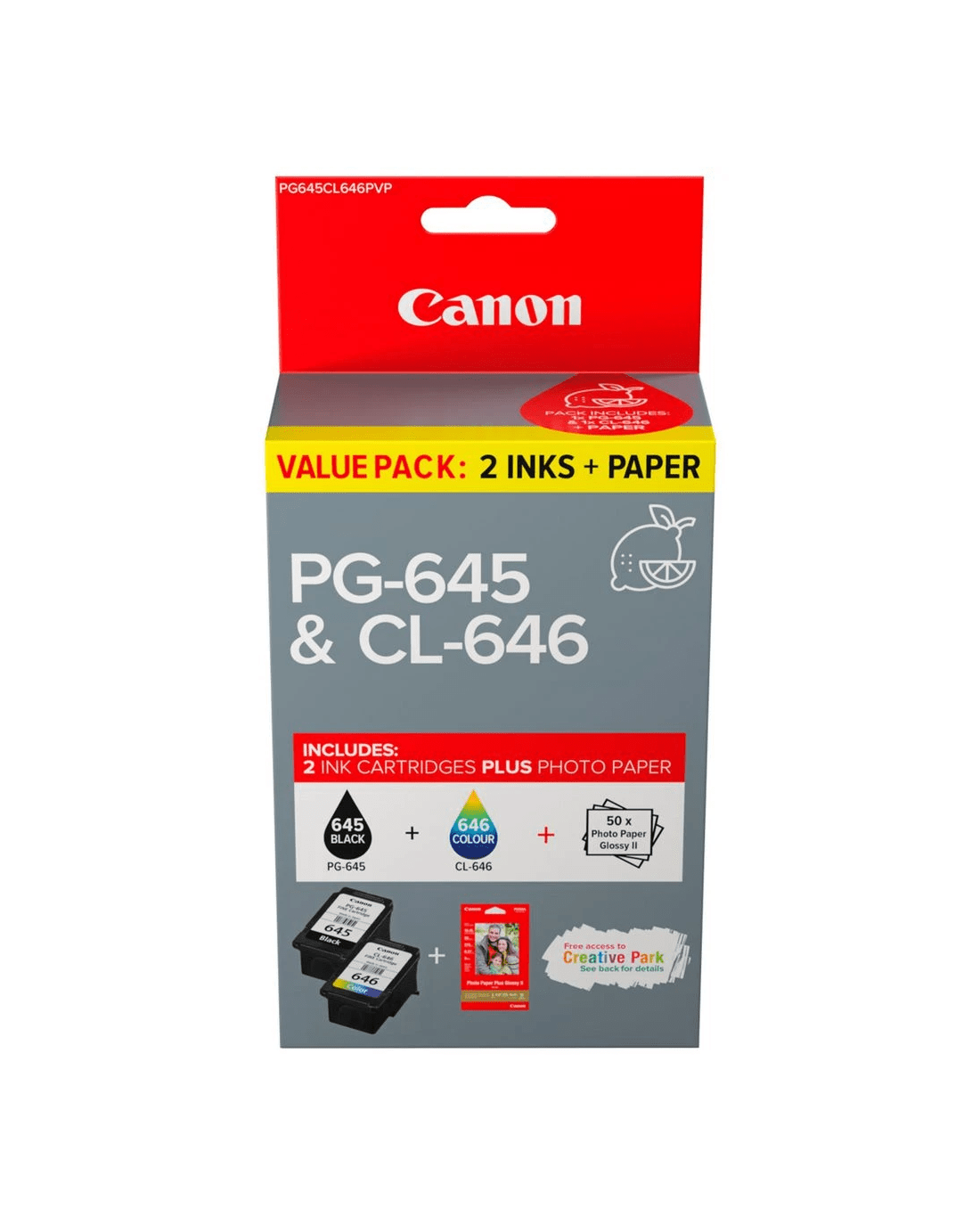 - This pack includes a PG-645 black ink cartridge and a CLI-646 tri colour ink cartridge.