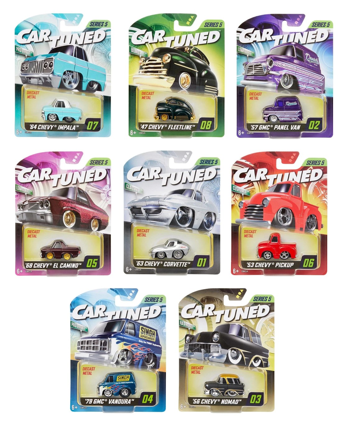 - COLLECTOR QUALITY: CarTuned™ diecast vehicles come DRIPPED-OUT in chrome details. Rock’n real rubber tires, for that silky smooth cruise. With metal bodies, these heavy hitters come in at 40+grams. The DETAILED WHEELS help set off the SLAMMED STANCE while still rolling with ease.