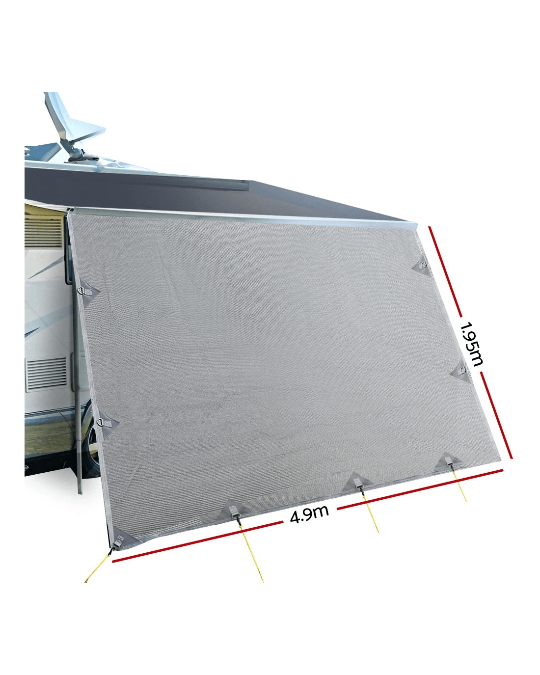 Sold by Aisle SixCaravan Privacy Screen Roll Out Awning 4.9x1.95M End Wall Side Sun Shade - Grey