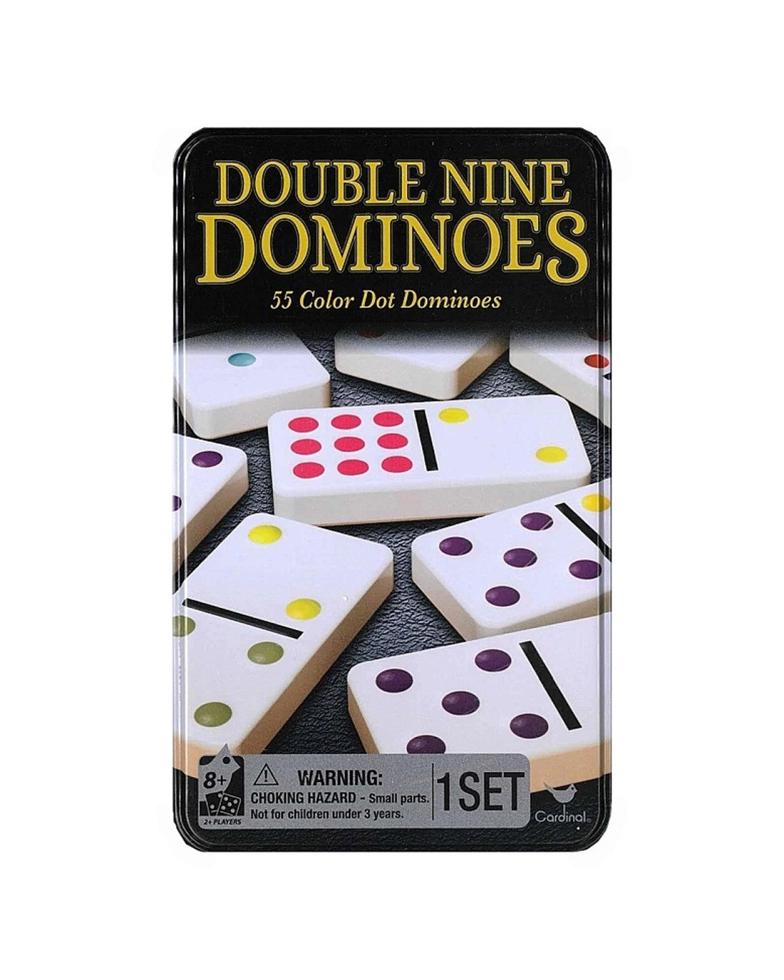 Family game night? Backyard BBQ with some friends? Whatever the occasion, Double Nine Dominoes can add fun and bring people together. This set includes 55 durable, ivory-colored, plastic dominoes that stack neatly in a convenient storage tin. Players pick seven tiles at random and try to match them to the tiles in play. The first player to place all of their tiles wins. Learn to play 16 different ways with the included instructions. Ages: 8 +