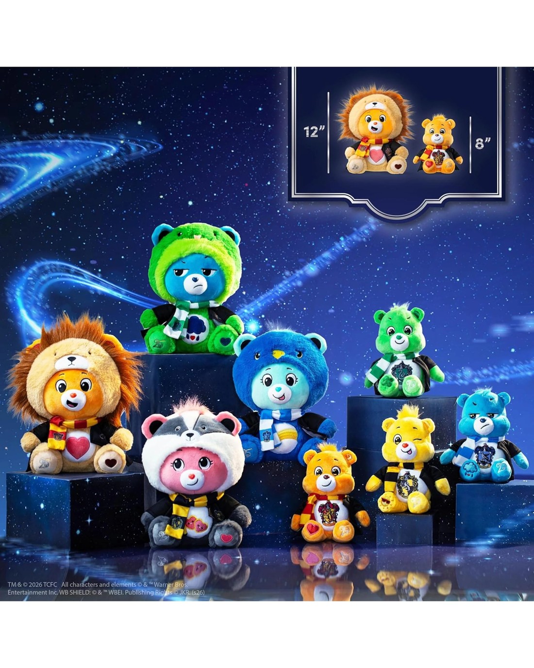 A new Care Bears x Harry Potter plush collection is being released to mark the franchise's 25th anniversary. The lineup features four Care Bears, each themed after one of the Hogwarts Houses: Gryffindor, Hufflepuff, Ravenclaw, and Slytherin.Gryffindor Tenderheart Bear, Hufflepuff House Love-a-Lot Bear, Ravenclaw House Wish Bear and Slytherin House Grumpy Bear, each has the Harry Potter 25th anniversary logo on its paw. (Each sold seperately) Ages: 4+