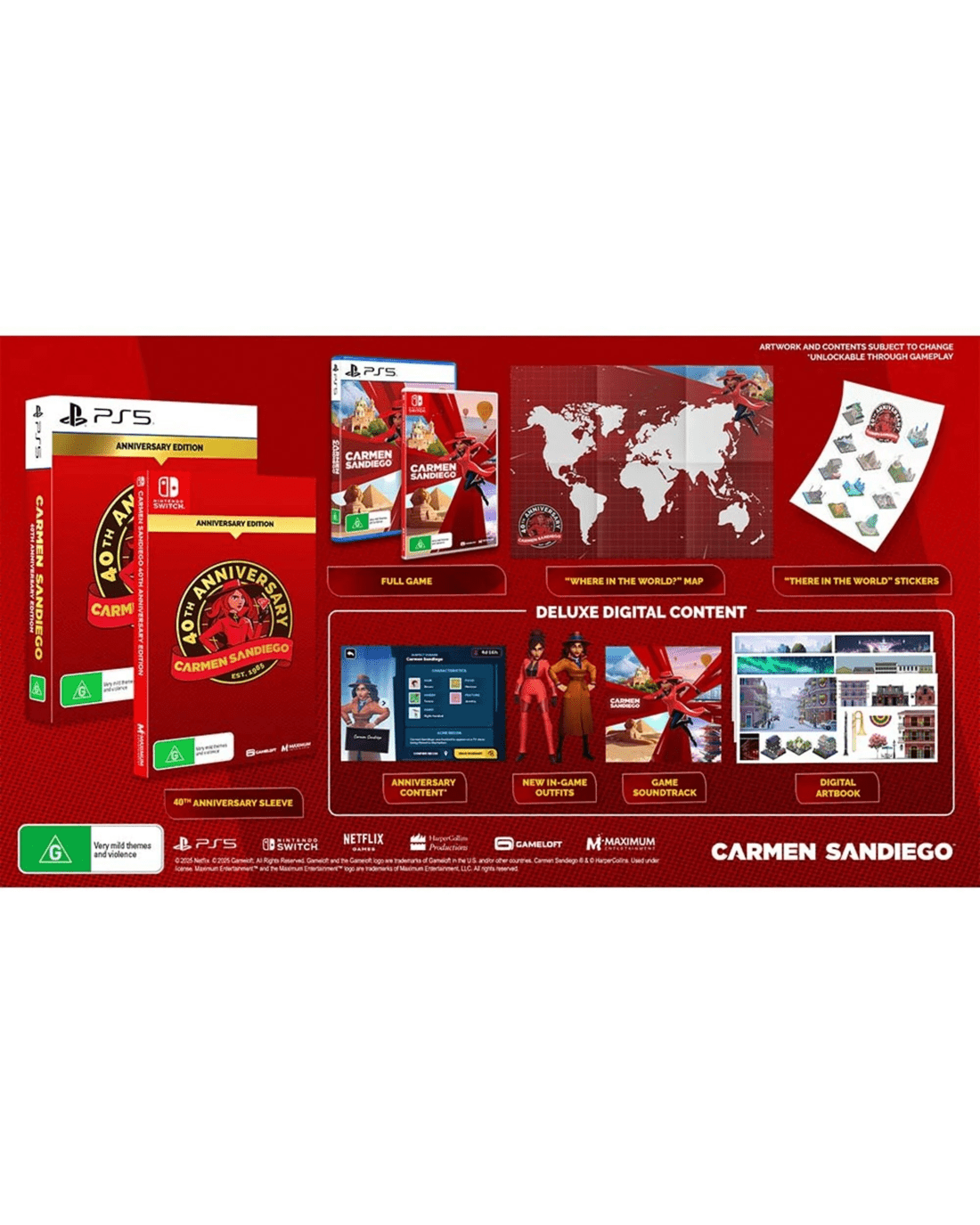 Celebrate 40 years of Carmen Sandiego with the 40th Anniversary Edition, crafted for devoted fans and new sleuths alike! Greet some familiar faces in the exclusive anniversary caper and become a master of disguise with some exclusive in-game outfits.