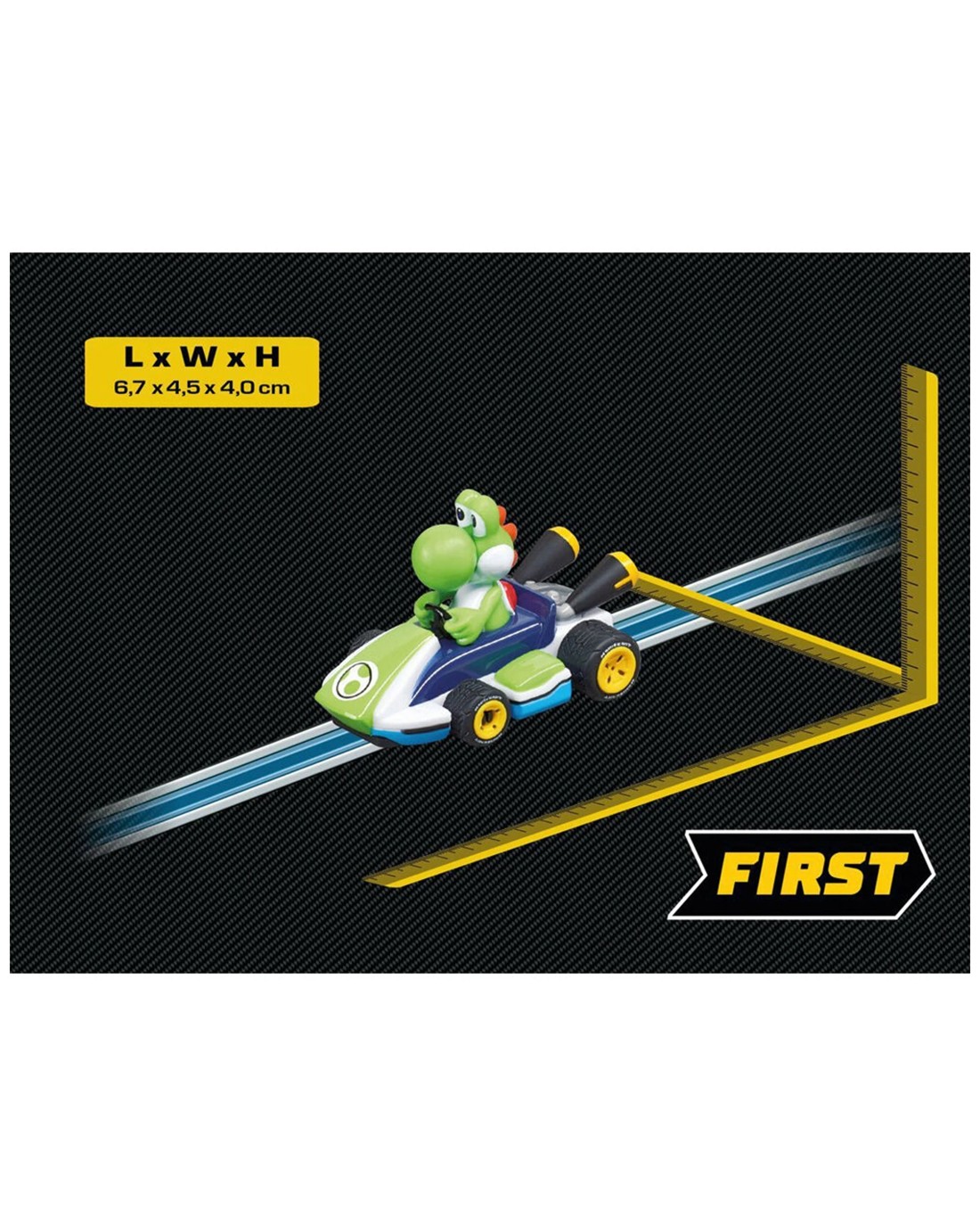 The Carrera First Mario-Kart Slot Car Yoshi is designed for young fans of the popular Mario Kart franchise who enjoy interactive racing activities. This die-cast slot car offers children a fun and engaging way to recreate their favourite racing adventures and develop their imaginative storytelling skills.Made to be compatible with Hot Wheels track systems, this 1:50 scale replica is perfect for active play and collection. The vibrant design featuring Yoshi makes it visually appealing and highly attractive for younger game enthusiasts. It is a fantastic gift idea for children who love Mario Kart and racing fun.Key Features:Licensed Mario Kart Theme: Features a character resembling Yoshi for immersive play and collection appealTrack-Optimized Die-Cast Design: Compatible with Hot Wheels tracks, ideal for racing adventuresPerfect for Young Fans: An engaging toy that promotes active and imaginative playVibrant, Cartoon-Style Appearance: Bright and colourful design that captures children's interestSpecifications:Brand: CarreraProduct Type: Slot Car ToyScale: 1:50Character: Yoshi from Mario KartDesign: Car with Yoshi figure sitting in the drivers seatCompatibility: Compatible with Hot Wheels track systemsIncludes: 1 x Slot Car Toy