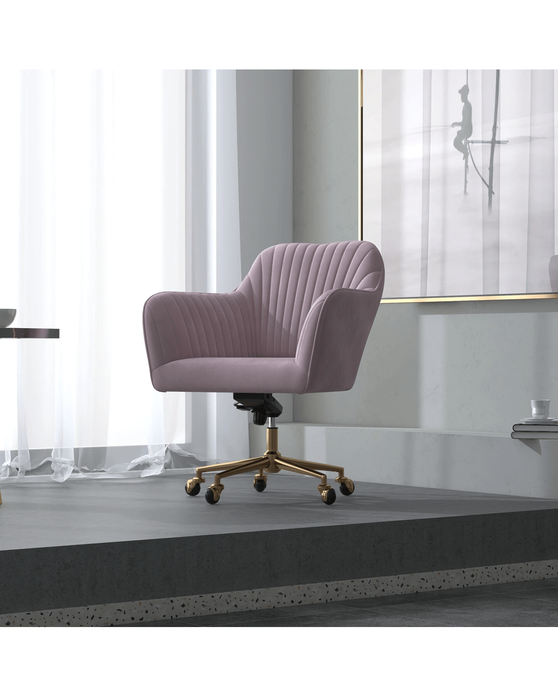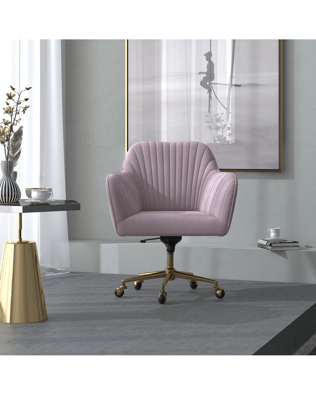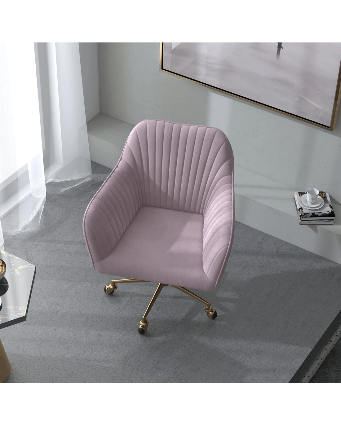 Sold by ABM GlobalCasa Decor Arles Velvet Office Chair Mid Back Swivel Height Adjustable - Pink