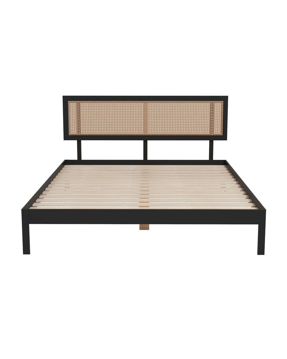 Sold by ABM GlobalCasa Decor Tulum Platform Bed Rattan Bed Head Solid Wooden Frame - Black