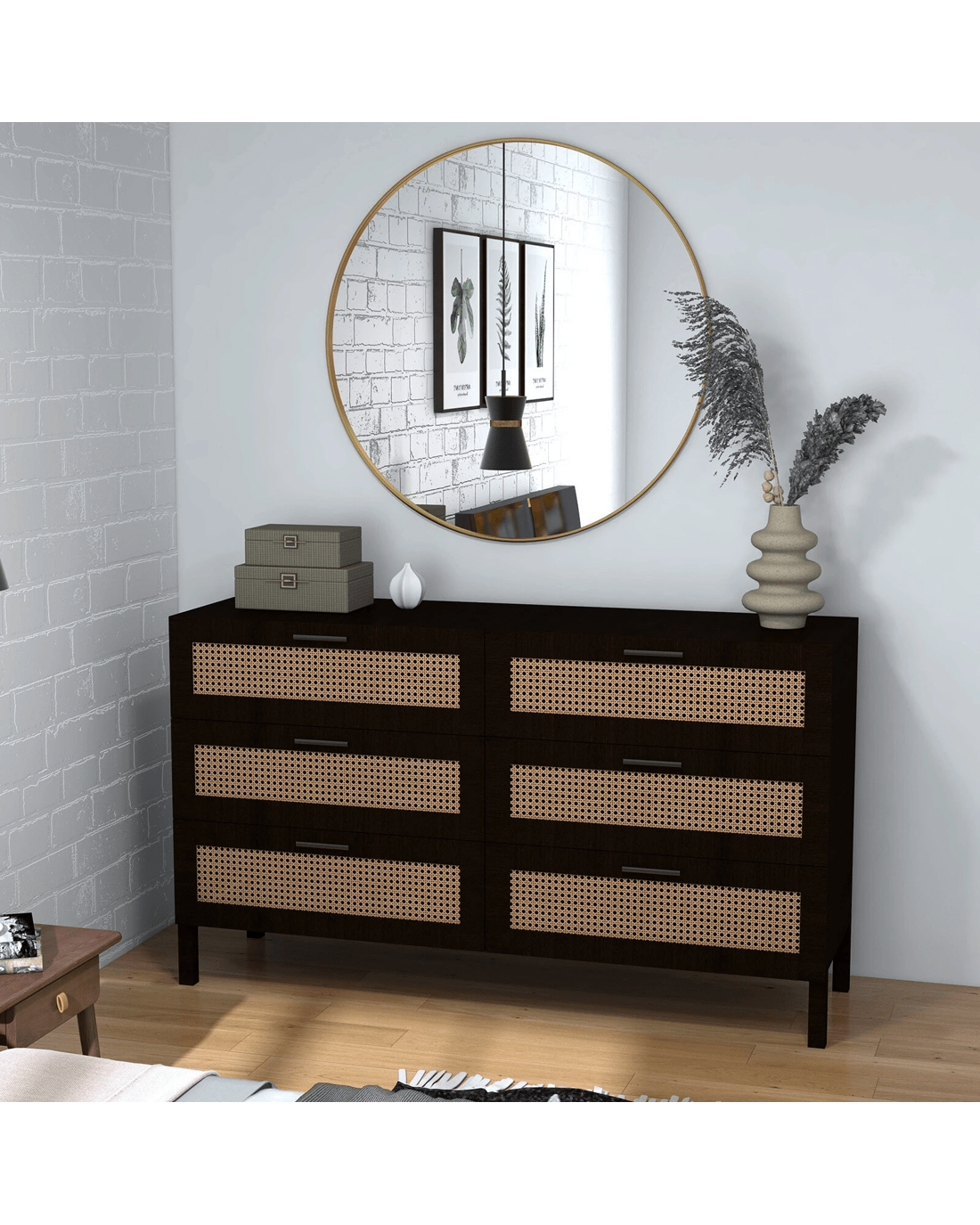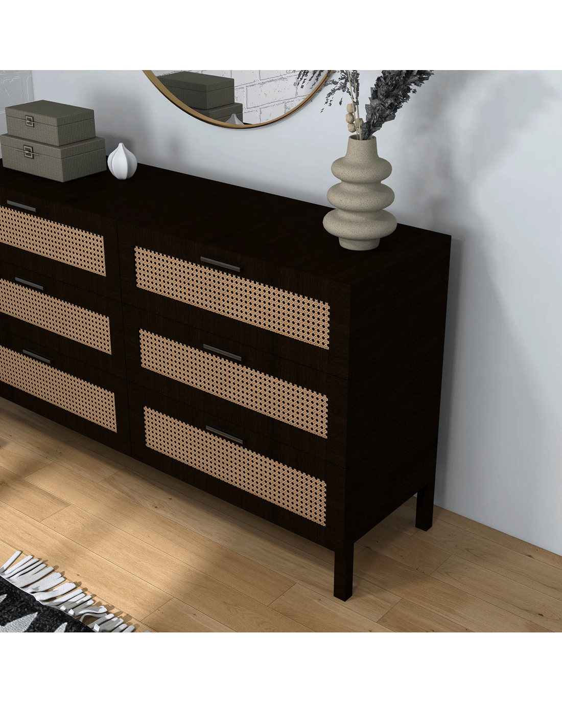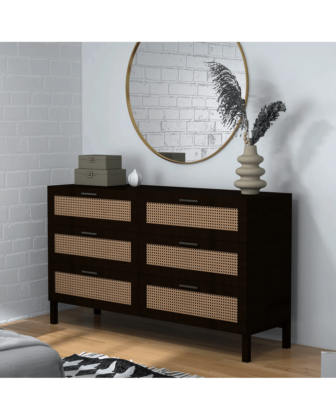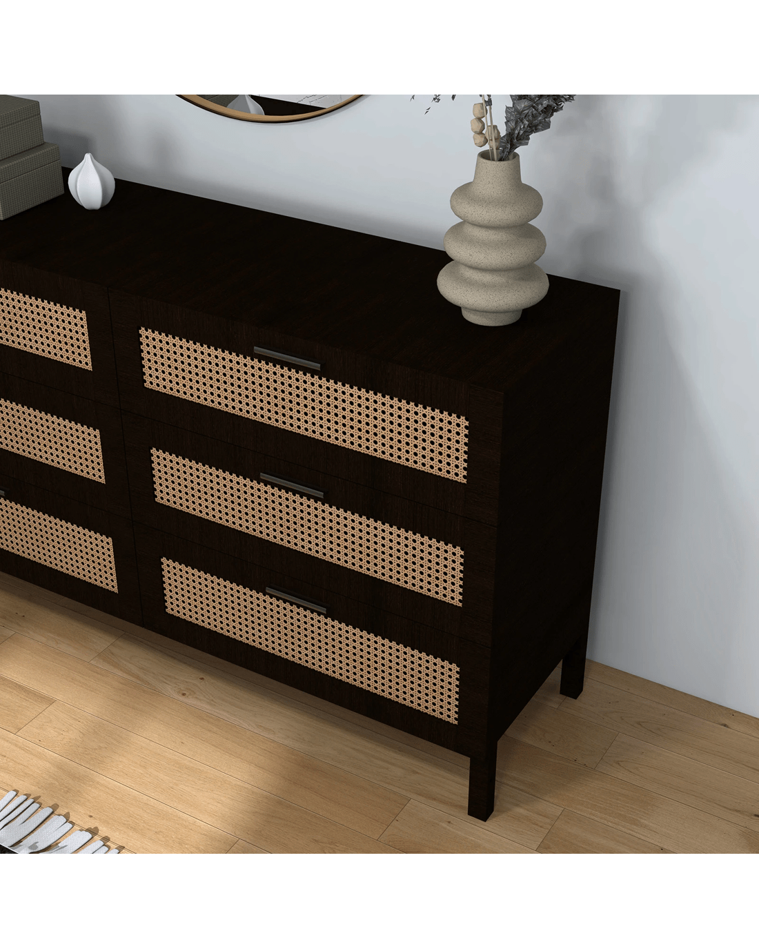 Casa Decor Tulum Rattan 6 Chest of Drawers Cabinet Bedroom Storage Tallboy - Black - Black