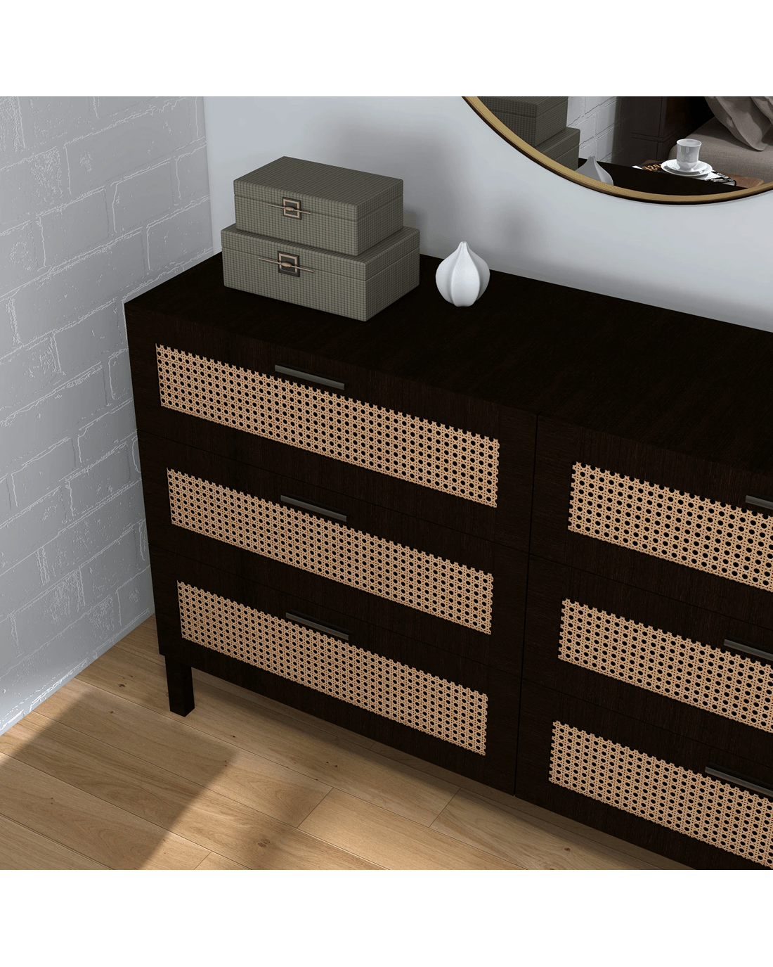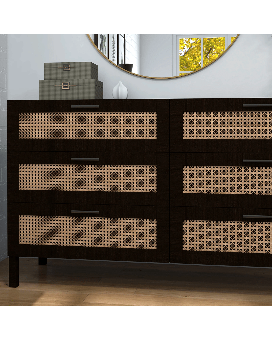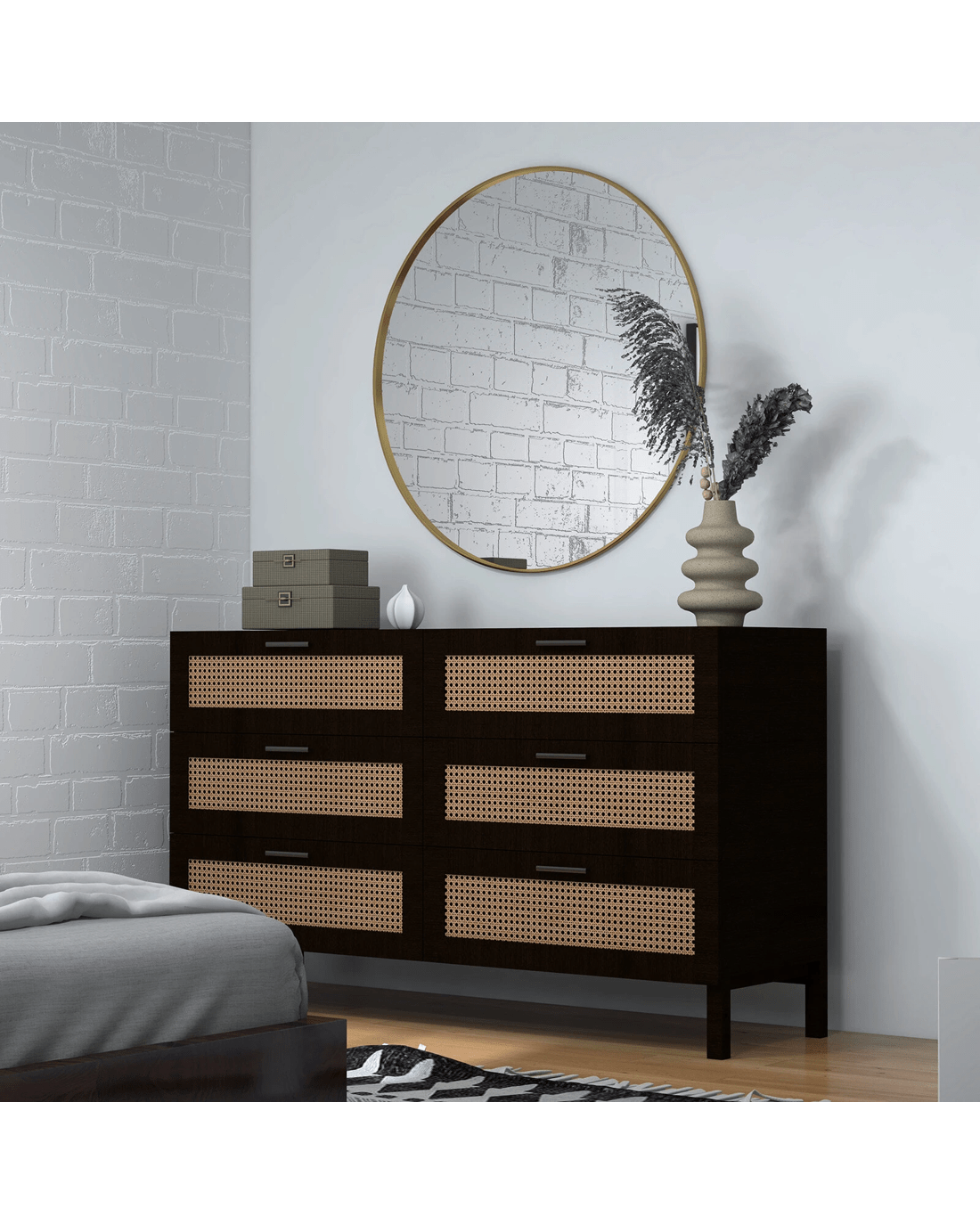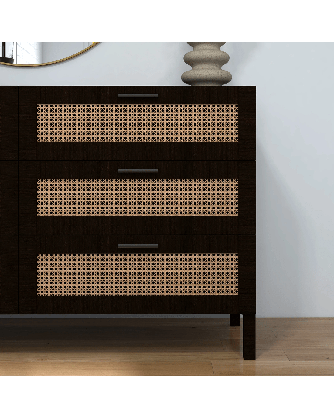 Casa Decor Tulum Rattan 6 Chest of Drawers Cabinet Bedroom Storage Tallboy - Black - Black
