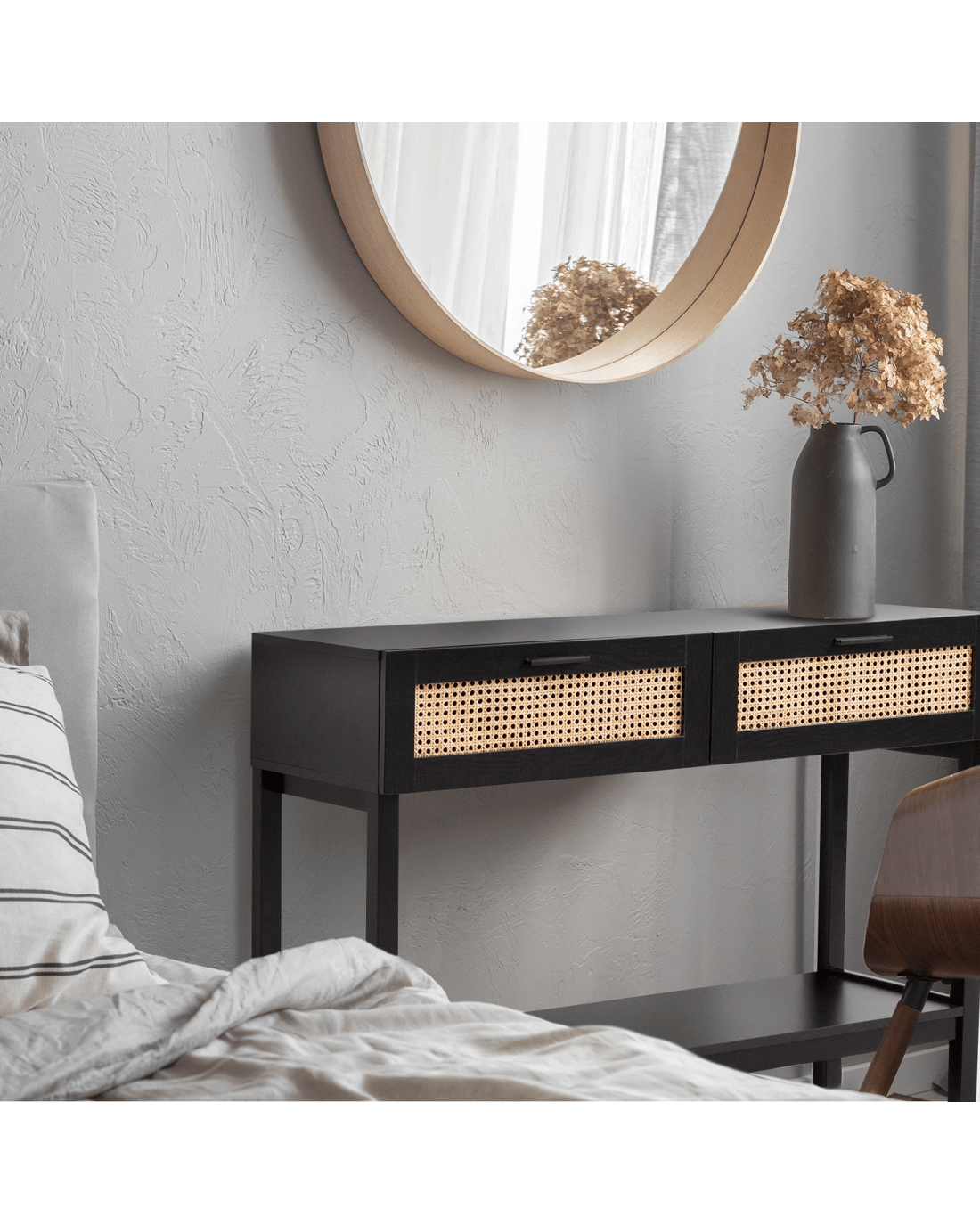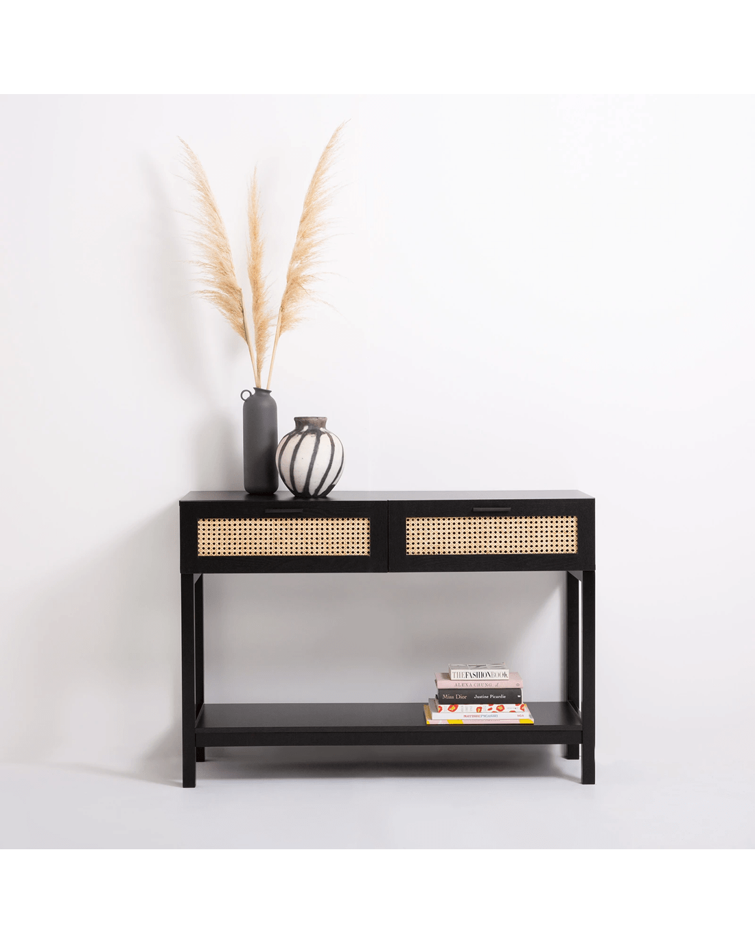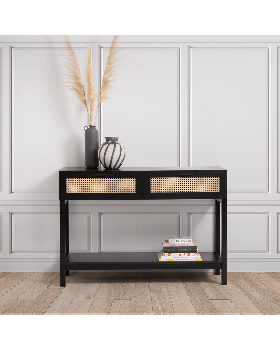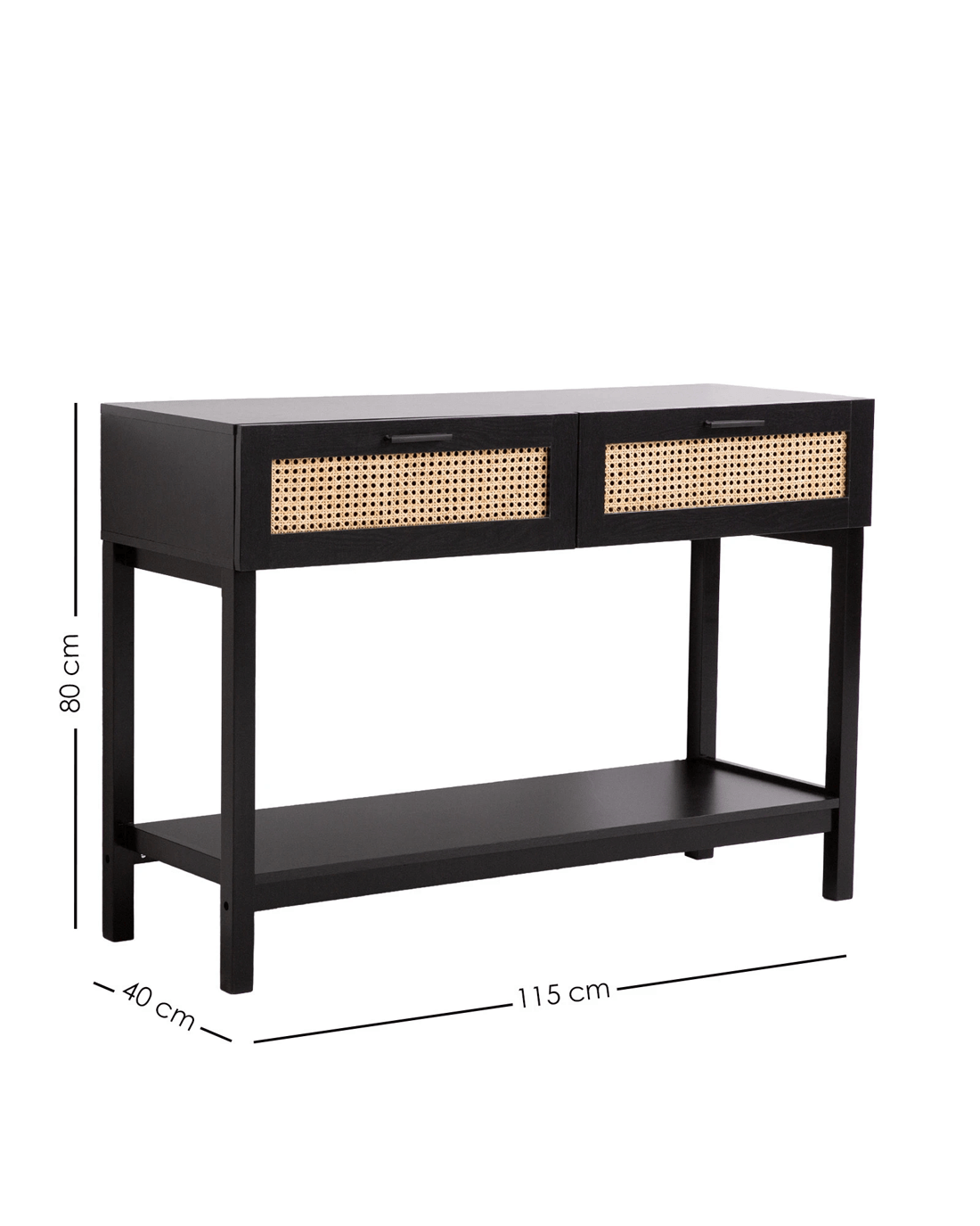 Casa Decor Tulum Rattan Console Table Entry Table Storage Hallway Wood - Black - Black