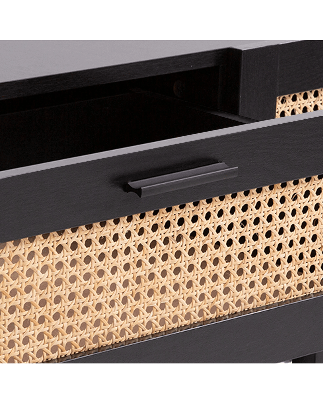The rattan drawers provide an easy organizational tool for keys, bags, hats, mail or whatever else you need to tuck out of sight.