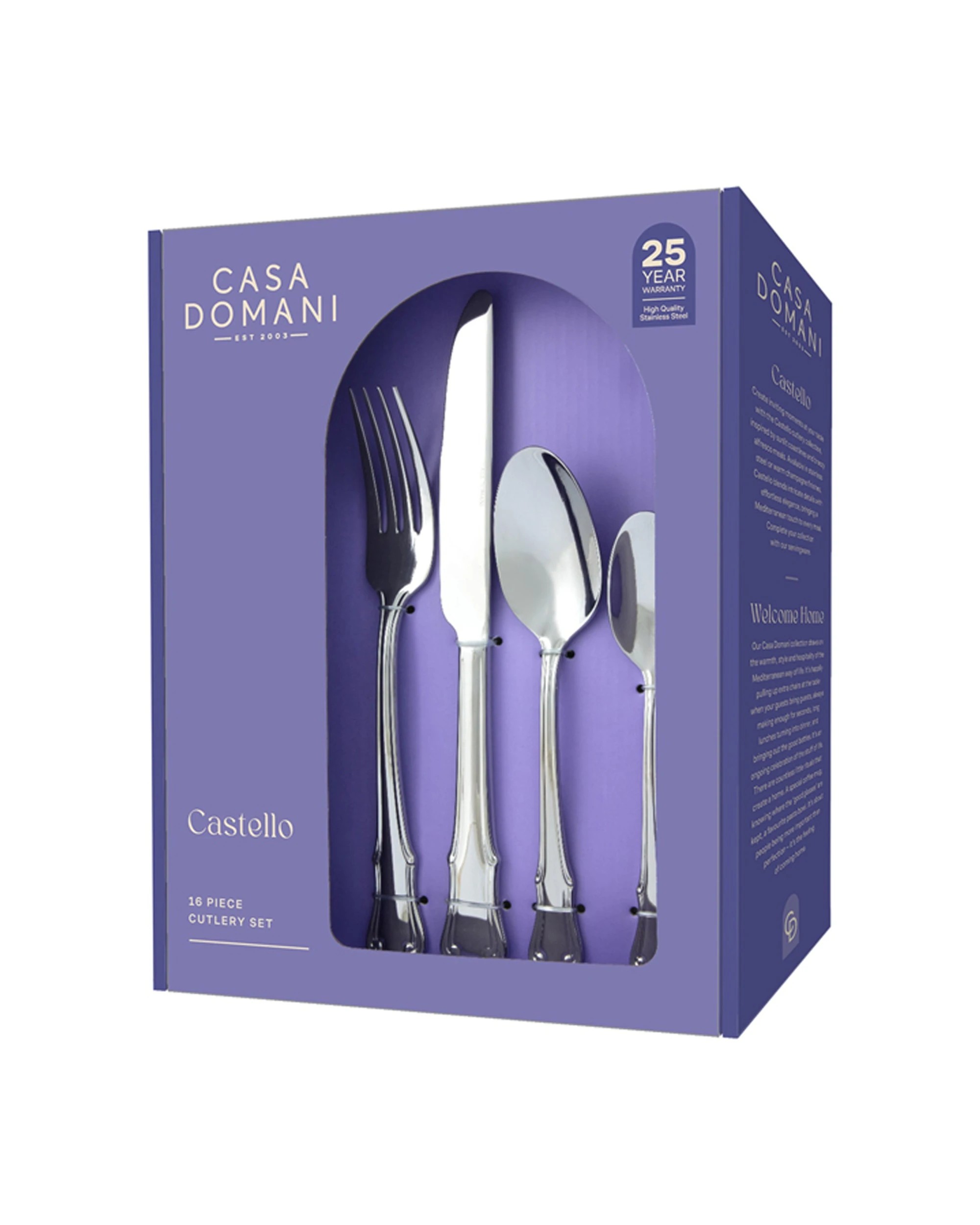Casa Domani 16 Piece Castello Cutlery Set Stainless Steel Gift Box Table Service - Silver