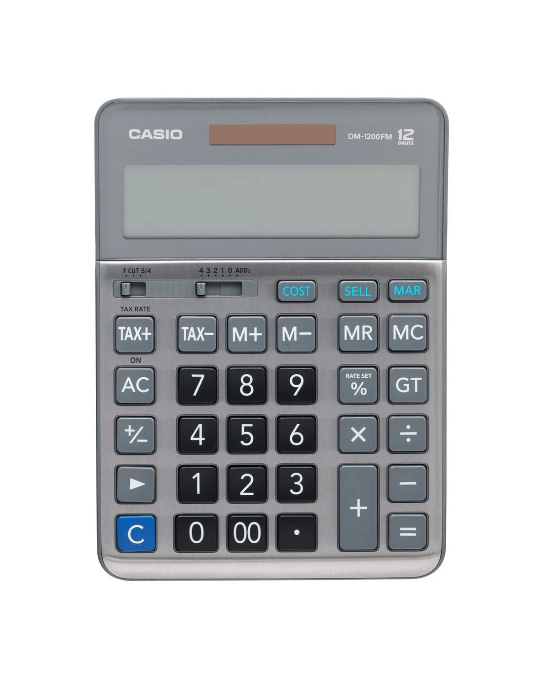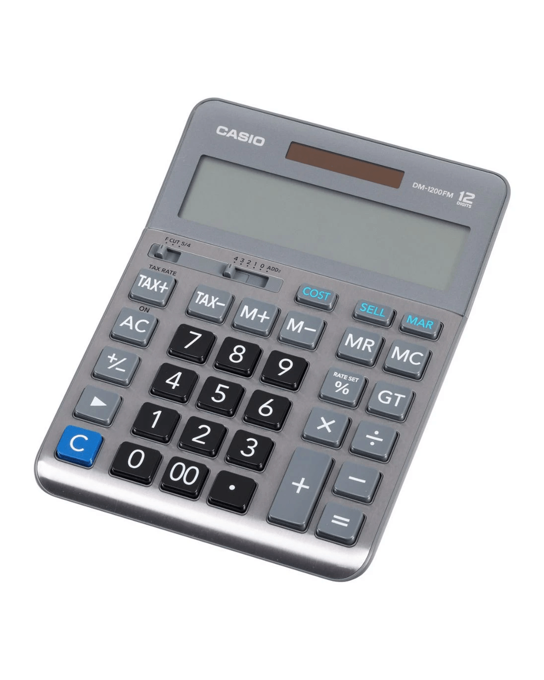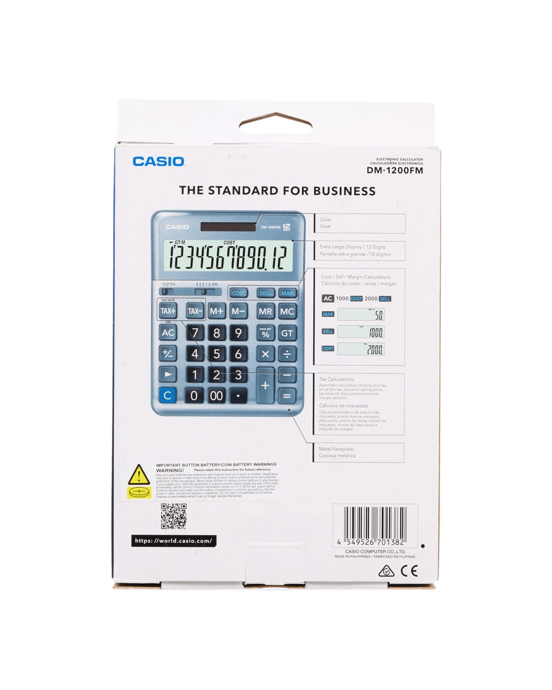 The Casio DM-1200FM is a versatile desktop calculator designed for everyday business and financial tasks. With a large, easy-to-read display and essential functions like tax, profit margin, and cost/sell/margin calculations, it’s ideal for office, retail, or home use.