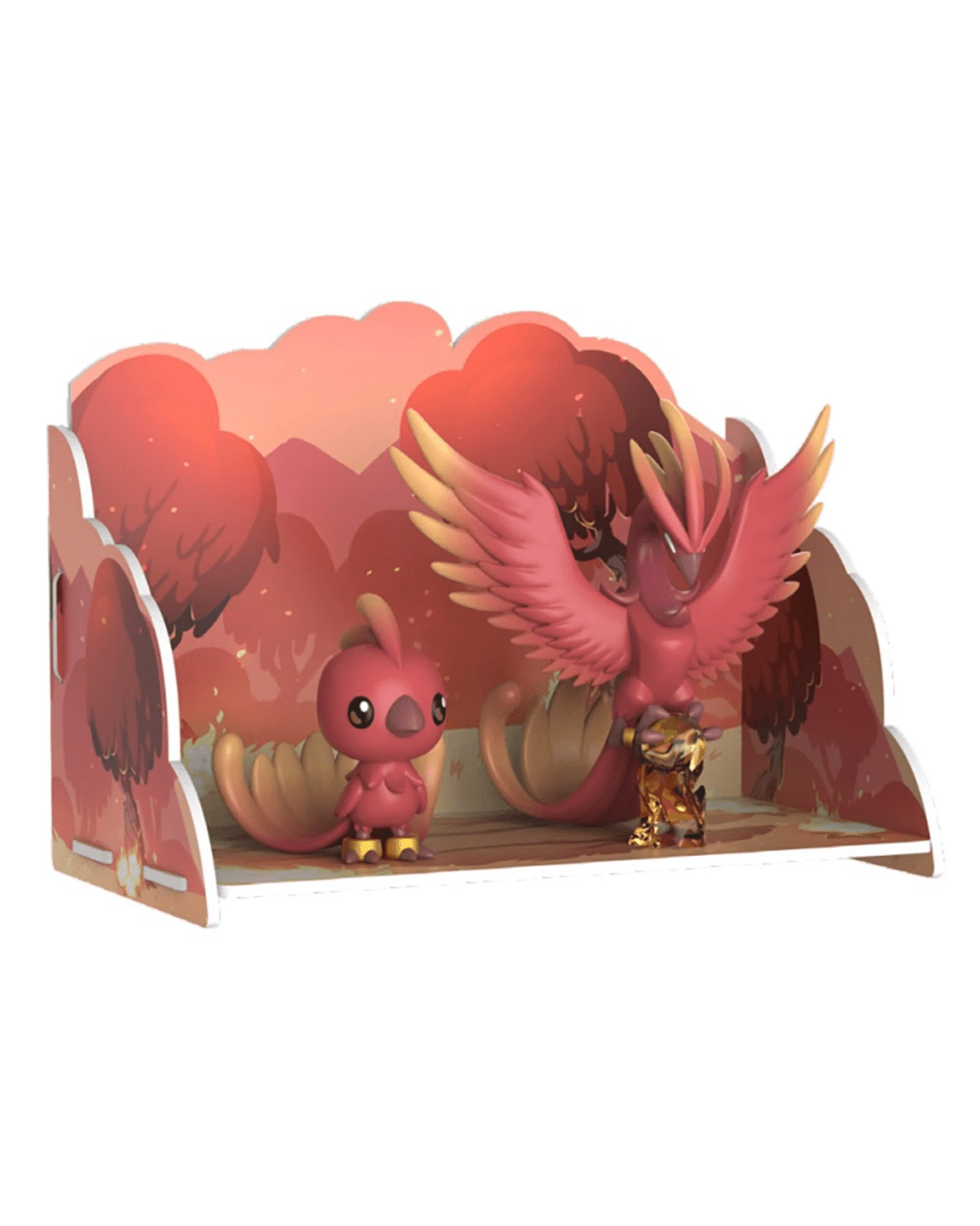 The Casting Shadows Molten Rock vinyl figures come in sets of two (one Base Form and one Shadow Form vinyl figure for the same character). Each vinyl figure set also comes with a chipboard environment based on the character's home Hex artwork that you can use to display them.