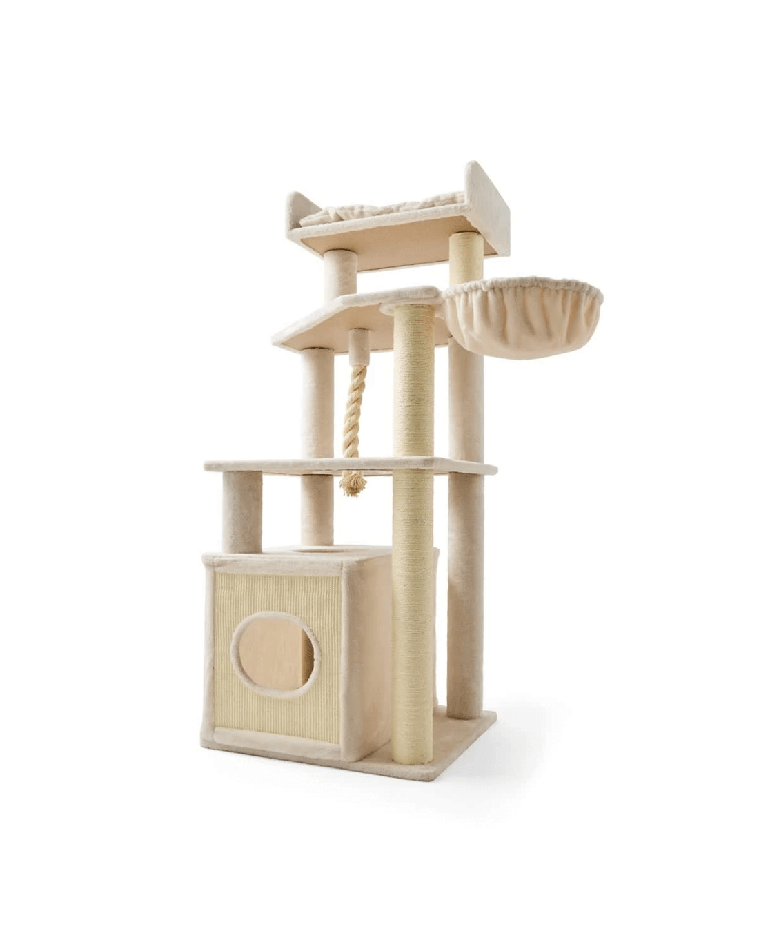 The soft cream colour brings a warm and neutral tone that complements any interior while creating a soothing space for your cat to unwind. Whether placed in a corner or by the window, this cat tower offers a cosy and stylish retreat your cat will keep coming back to!