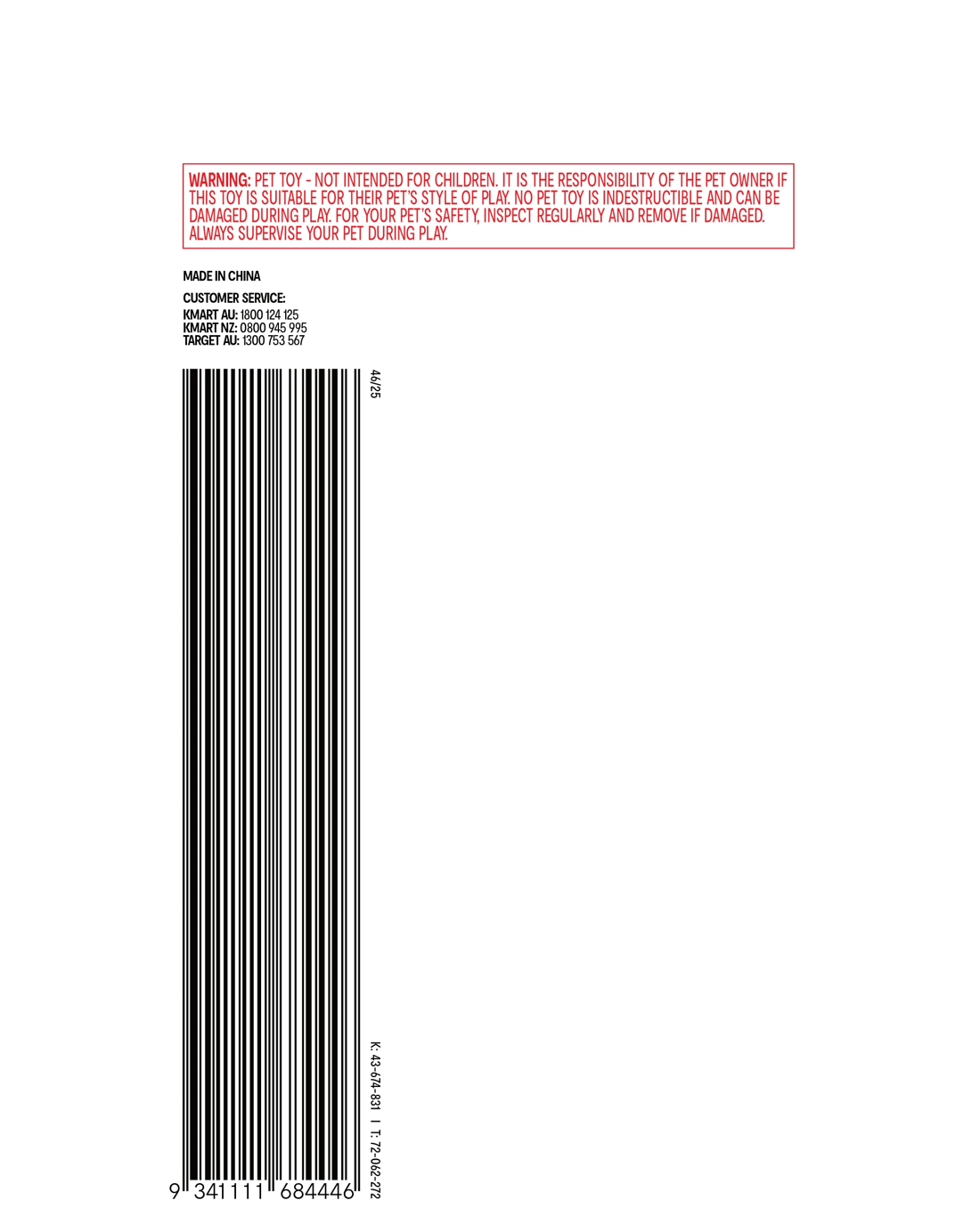Caution: Pet toy - not intended for children. Always supervise your pet during play. Follow usage instructions carefully.