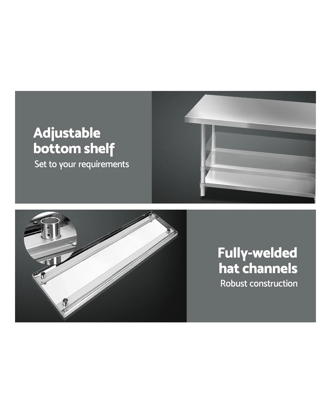 Sold by Aisle SixCefito 1829x760mm Stainless Steel Kitchen Bench with Wheels 430 - Multi
