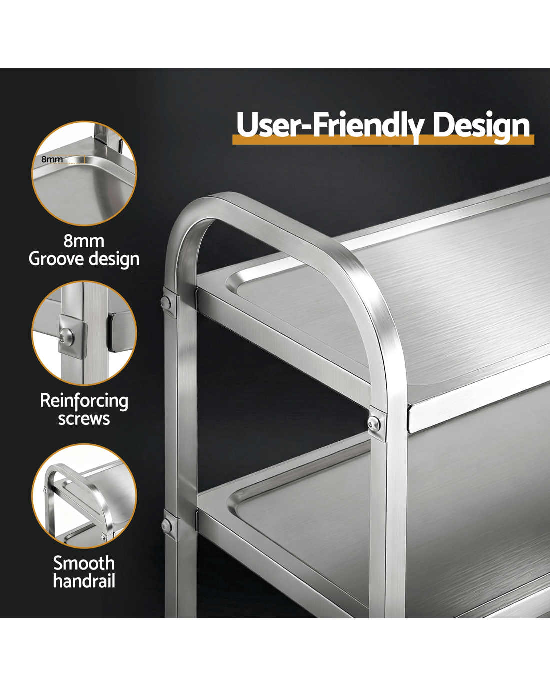 Cefito 3-Tier Stainless Steel Kitchen Bench with Wheels x1