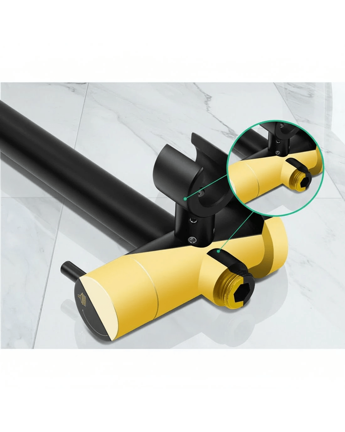 You will get a top quality fixed 9" shower head that simulates rainfall for a very soothing shower plus a handheld shower head with up to three spray patterns to let you target the water at specific areas with varying intensities. Made with a solid brass body and finished in matte black, the durable fixed shower head also features a built-in brass diverter to prevent leakage. The handheld shower head has a 1.5m stainless steel water hose to allow flexible use. The shower head comes with a 3-star rating with a flow rate of 9 litres/minute for a relaxing shower that satisfies.