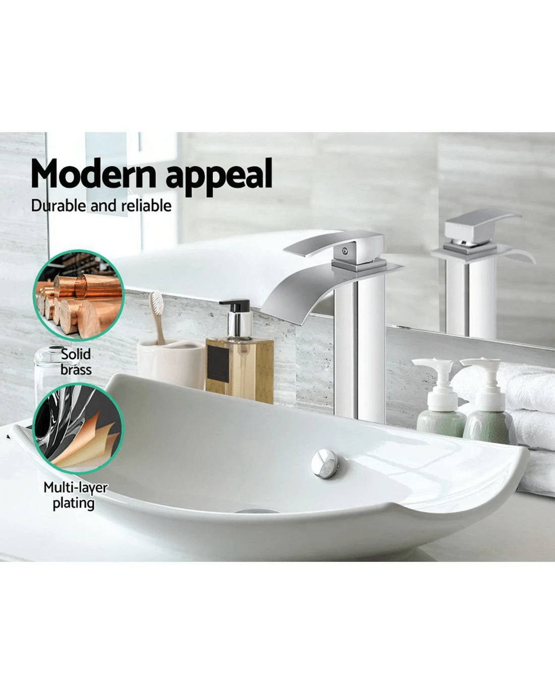 Give your bathroom a sleek makeover with the Cefito Mixer Tap. Crafted from a high-quality mix of 304 stainless steel, solid brass, polished chrome and ABS plastic, our Mixer Tap is meticulously designed to increase efficiency and enhance flexibility with any washing done in your sink. It also features a 35mm drip-free ceramic cartridge that ensures longlasting performance for absolute durability and reliability. Easy to install, the Cefito Mixer Tap will fit any sink with a tap hole diameter between 35mm and 38mm. Together with its 5-year warranty, the Cefito Mixer Tap is your best choice for a modern kitchen that stands out in form and function. Get yours today.