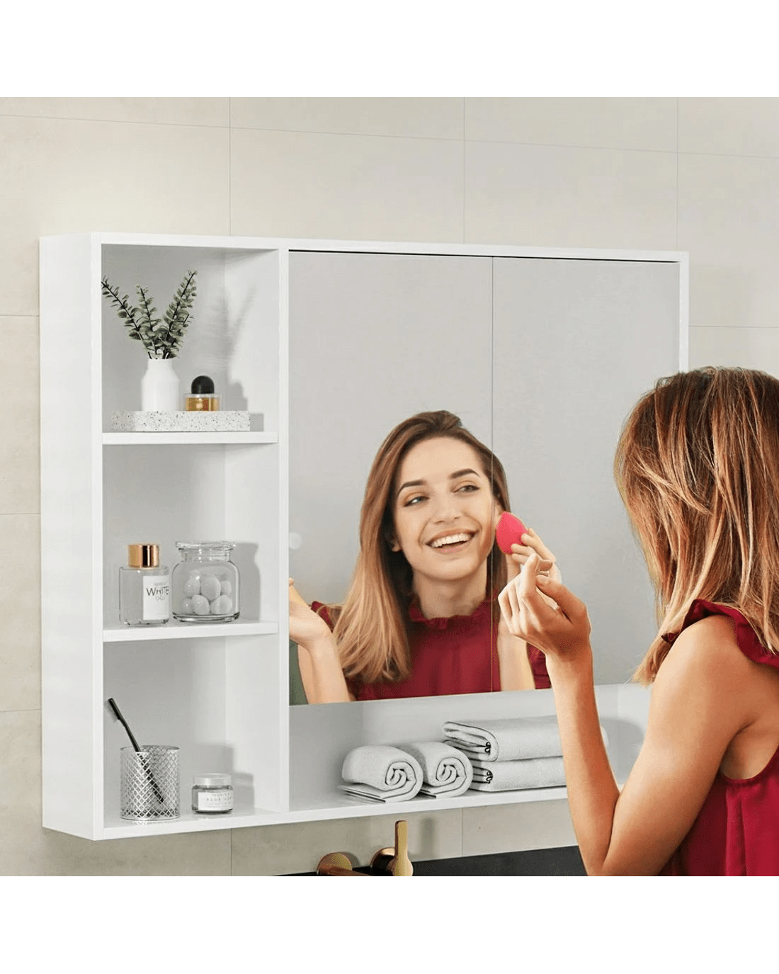 Simplify your daily routine with the Cefito Wall Cabinet. Its crystal-clear mirror supports effortless grooming—whether applying makeup, shaving, or skincare—while keeping toiletries, medicines, and essentials neatly stord behind the mirrored door. No more cluttered countertops or searching for your razor or moisturiser.