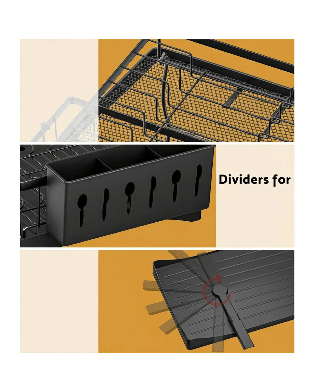 Keep your dishes clean, clear and fresh with the Cefito Dish Rack. The all-in-one two-tier dish rack has a detachable and removable design so you can customize your rack to the perfect configuration for your kitchen. Set on a stable stainless-steel frame with a mesh base, the rack can hold all of your cutting boards, cups, plates, cutlery and more. A drainage pipe in the base allows for proper ventilation and quick drying of all your pieces, while cutlery dividers allow you to dry your cutlery separately. Best of all, the stylish design won't be an eyesore in your modern home. Easy to clean and maintain, the Cefito Dish Rack will make light work of your dishes.