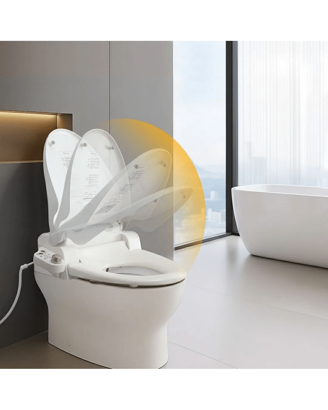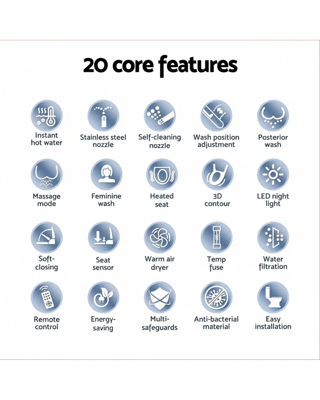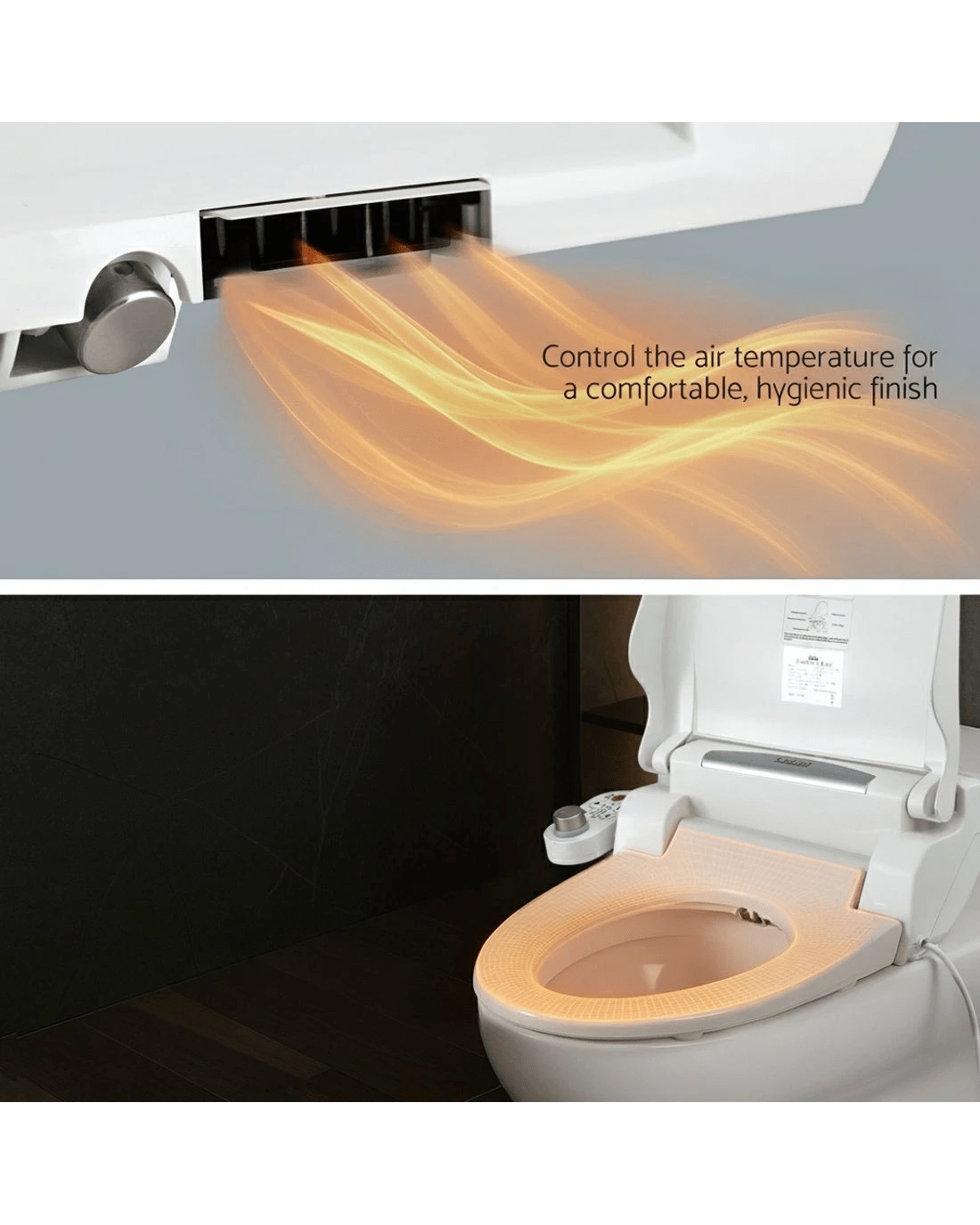 Transform your bathroom into a sanctuary of cleanliness comfort with the Cefito Smart Bidet Toilet Seat. This electronic bidet boasts IPX4 waterproofing and a user-friendly one-knob with adjustable water temperature (up to 40℃) and spray intensity. Key features include a self-cleaning stainless steel nozzle, LED night light, and automatic deodorisation. Experience luxury with a heated seat (up to 40℃) and warm air dryer. Designed for energy-saving, this Bidet Toilet Seat includes water-filtering and multi-safeguards for peace of mind. Its slow-closing lid adds quiet convenience to your toilet bidet experience.