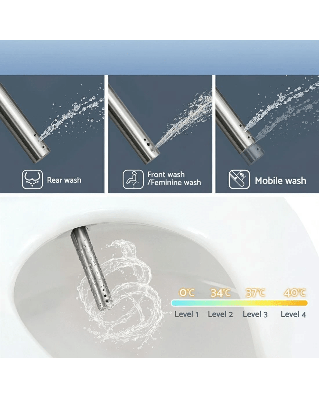 Water temperature control: 4-step adjustment (OFF, 34℃, 37℃, 40℃)