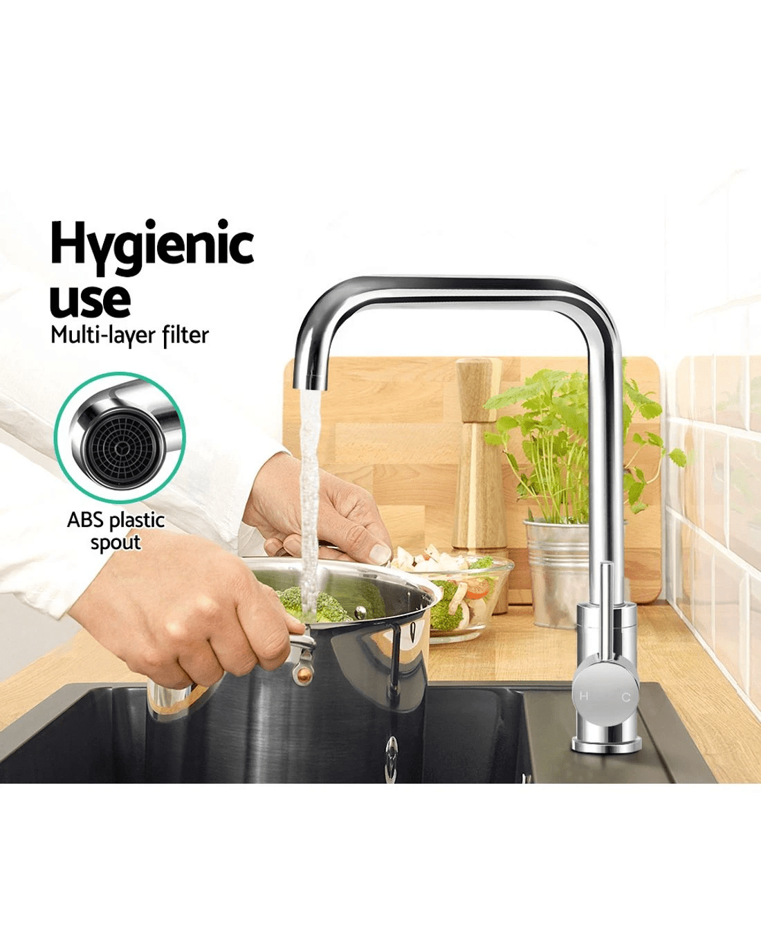 Give your kitchen a sleek makeover with the Cefito Kasper Kitchen Mixer Tap. Crafted from a high-quality mix of 304 stainless steel, solid brass, polished chrome and ABS plastic, our mixer tap is meticulously designed to increase efficiency and enhance flexibility with any washing done in your sink. It also features a 35mm drip-free ceramic cartridge that ensures longlasting performance for absolute durability and reliability. Plus, the gooseneck allows you to swivel the water in any direction. Easy to install, the mixer tap will fit any sink with a tap hole diameter between 35mm and 38mm.