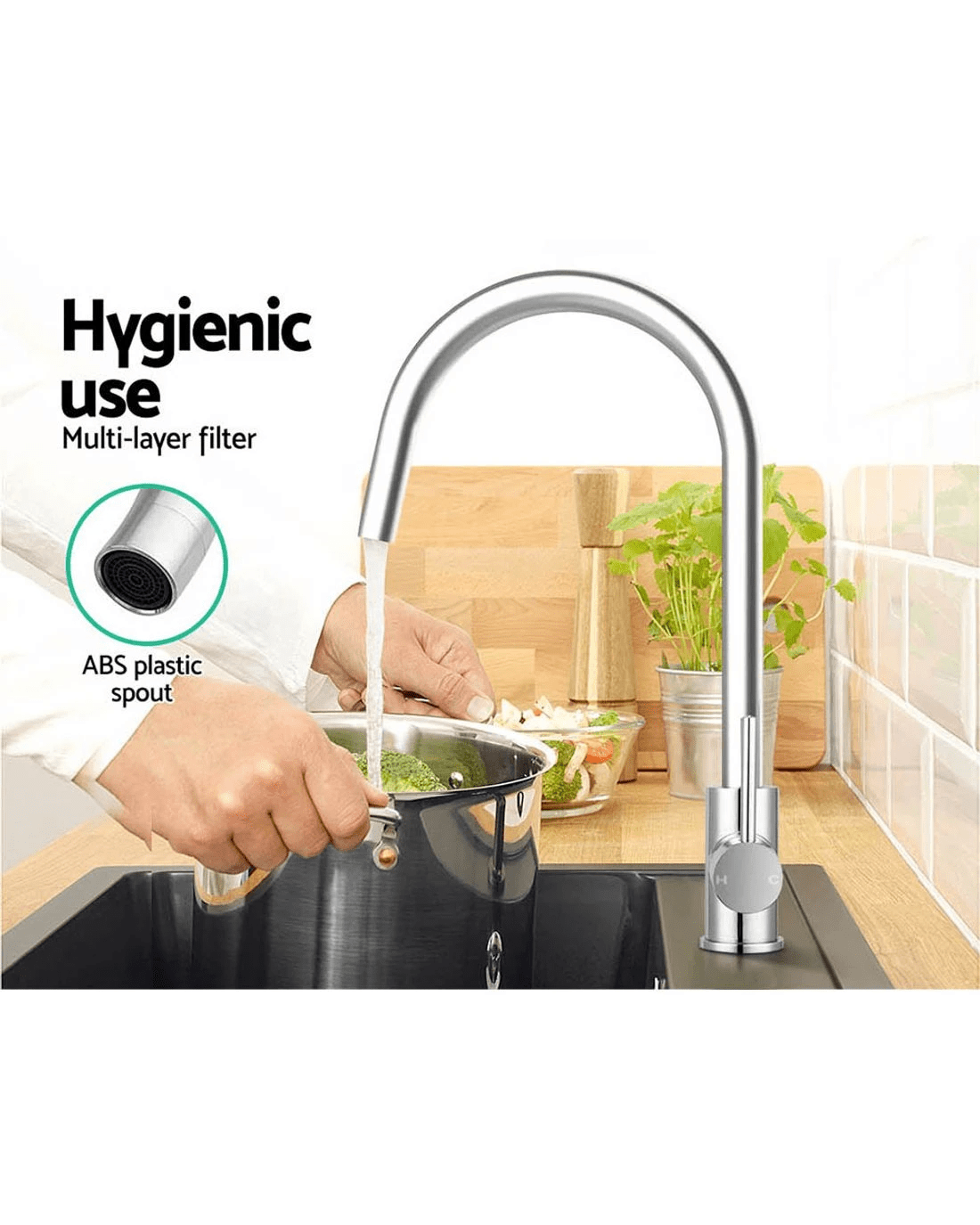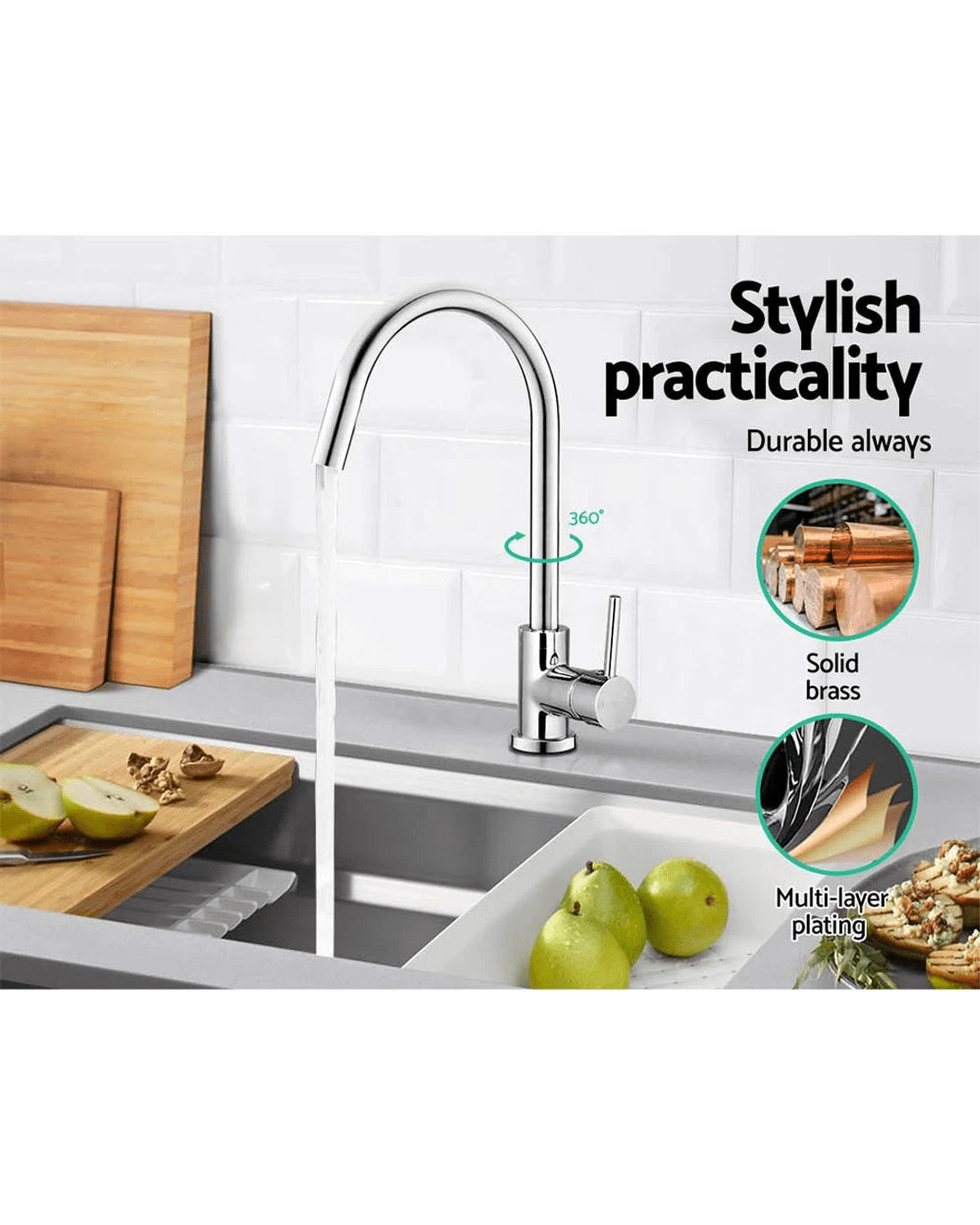 Give your kitchen a sleek makeover with the Cefito Kitchen Mixer Tap. Crafted from a high-quality mix of 304 stainless steel, solid brass, polished chrome and ABS plastic, our Kitchen Mixer Tap is meticulously designed to increase efficiency and enhance flexibility with any washing done in your sink. It also features a 35mm drip-free ceramic cartridge that ensures longlasting performance for absolute durability and reliability. Plus, the gooseneck allows you to swivel the water in any direction. Easy to install, the Cefito Kitchen Mixer Tap will fit any sink with a tap hole diameter between 35mm and 38mm. Together with its 5-year warranty, the Cefito Kitchen Mixer Tap is your best choice for a modern kitchen that stands out in form and function. Get yours today.