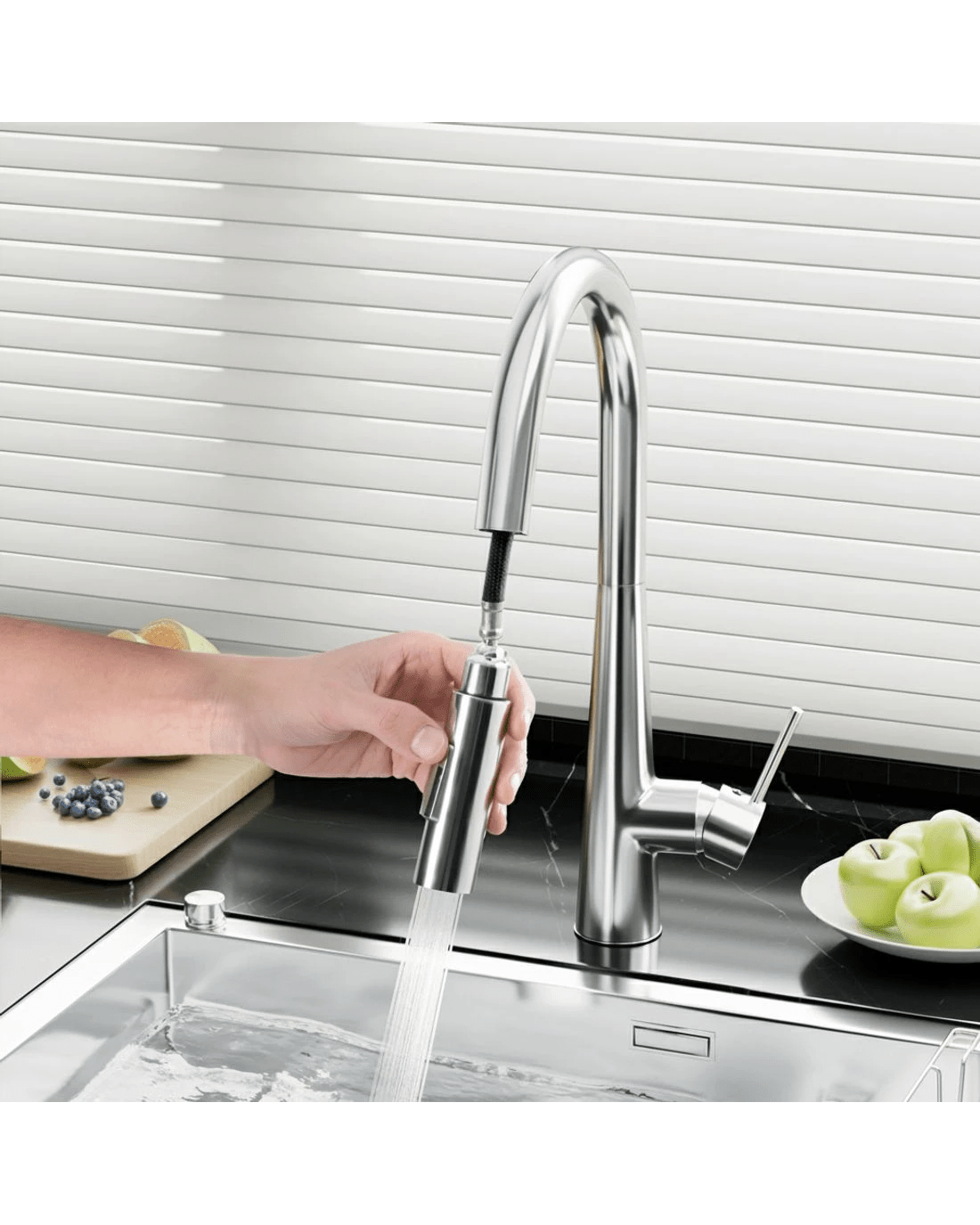 Give your kitchen a sleek makeover with the Pull-out Mixer Tap. Crafted from a high-quality mix of 304 stainless steel, solid brass, and ABS plastic, our Pull-Out Mixer Tap is meticulously designed to increase efficiency and enhance flexibility with any washing done in your sink. It also features a 35mm drip-free ceramic cartridge that ensures longlasting performance for absolute durability and reliability. Plus, the tap allows you to swivel the water in any direction while the pull-out function and button control extends its functionality in more ways than one. Easy to install, the Pull-out Mixer Tap will fit any sink with a tap hole diameter between 35mm and 38mm. The Pull-out Mixer Tap is your best choice for a modern kitchen that stands out in form and function. Get yours today.