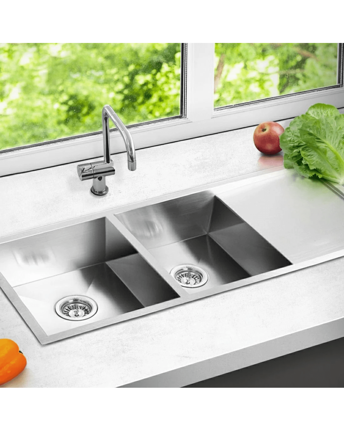 Sold by Aisle SixCefito Kitchen Sink 111X45CM Stainless Steel Basin Double Bowl - Silver