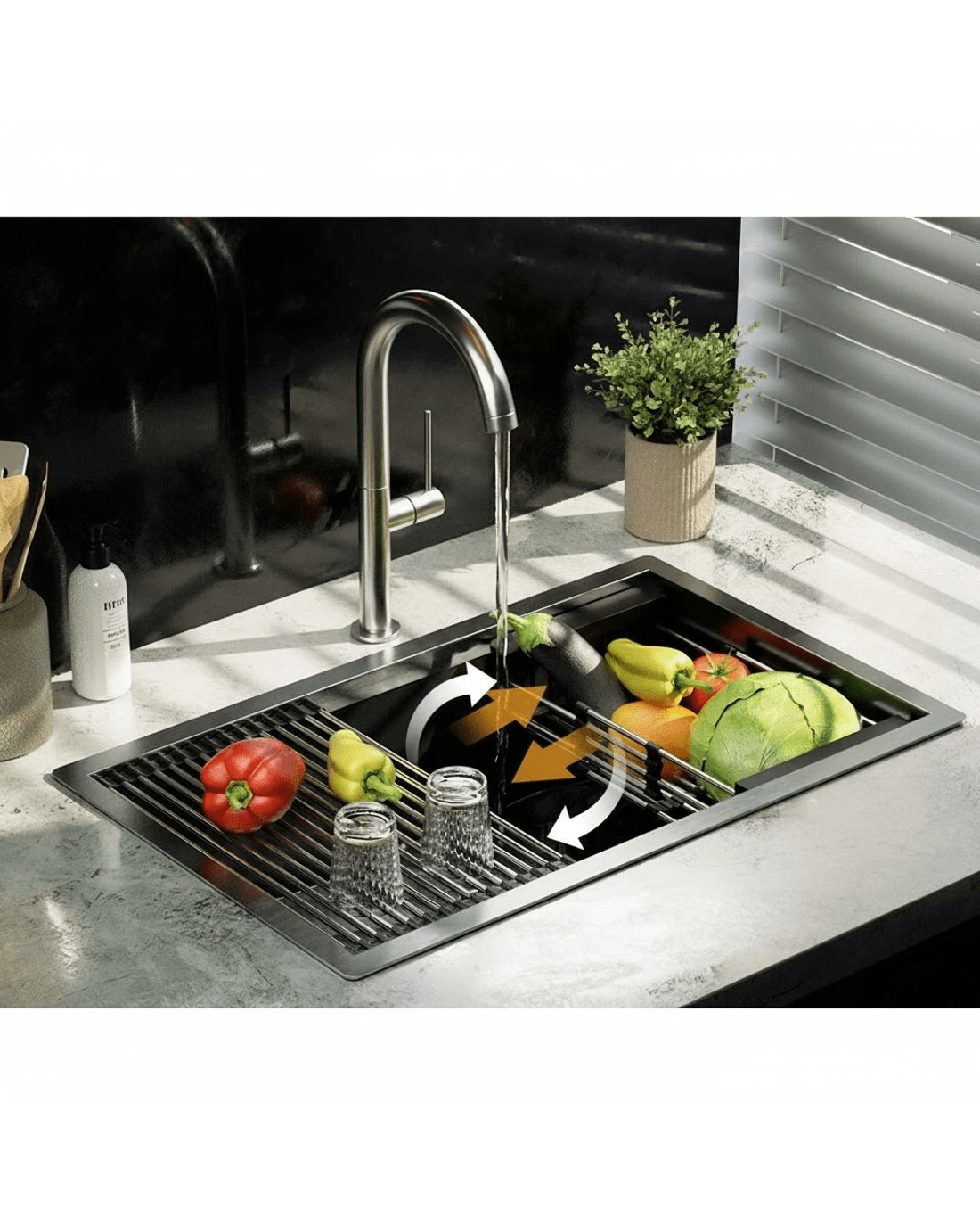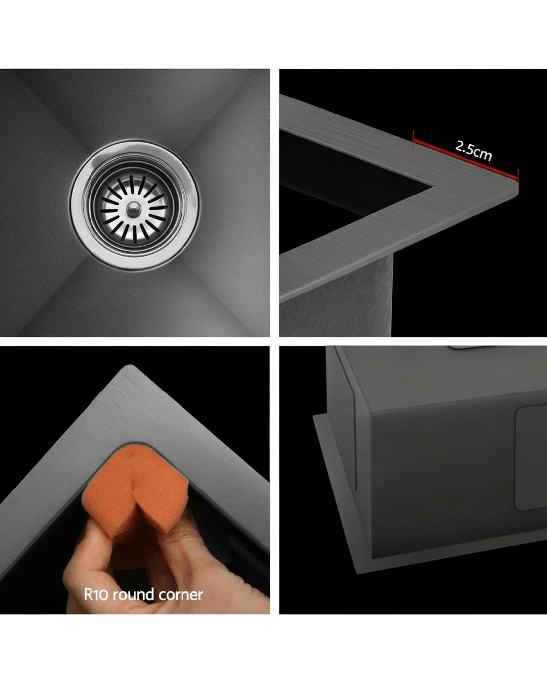 The Cefito Handmade Stainless Steel Sink is built to exacting standards so that you get the very best of quality materials and craftsmanship. It is crafted from heavy-duty food grade 304 stainless steel, unlike others that are made from inferior 201 grade or 304 imitations. Built to be scratch-proof, oil-proof and more importantly, bacteria-free, the silky-smooth satin-coated stainless-steel sink also features an X-flume design for easy drainage, deep and wide bowl for practicality, R10 rounded corners for safety and easy cleaning,anti-condensation paint, and sound-deadening pads. Suitable for drop-in, flush-mount or under-mount installation, our stainless steel sink should have a definitive place in your uncompromising kitchen.