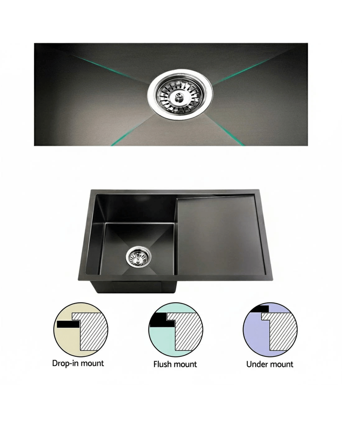 Sold by Aisle SixCefito Kitchen Sink 75X45CM Stainless Steel Basin Single Bowl - Black