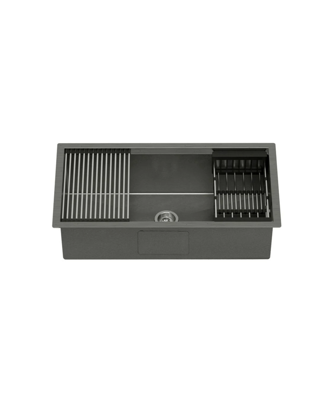 Sold by Aisle SixCefito Kitchen Sink 81X45CM Stainless Steel Single Bowl Drain Rack Basket - Black