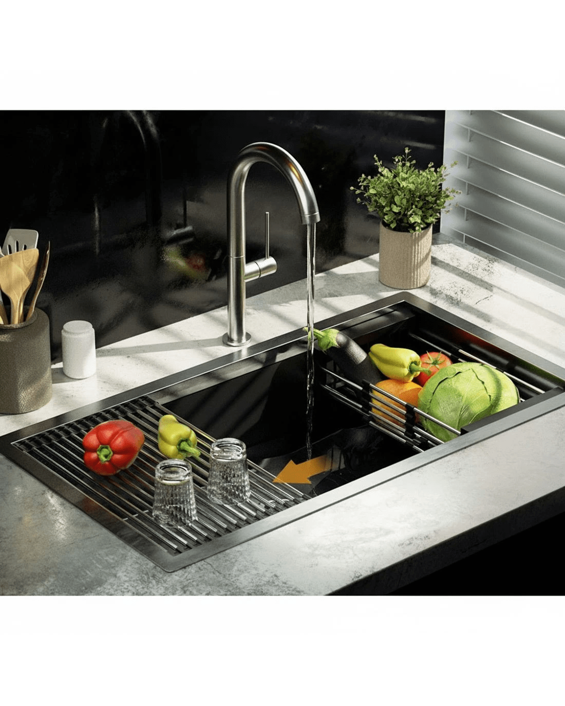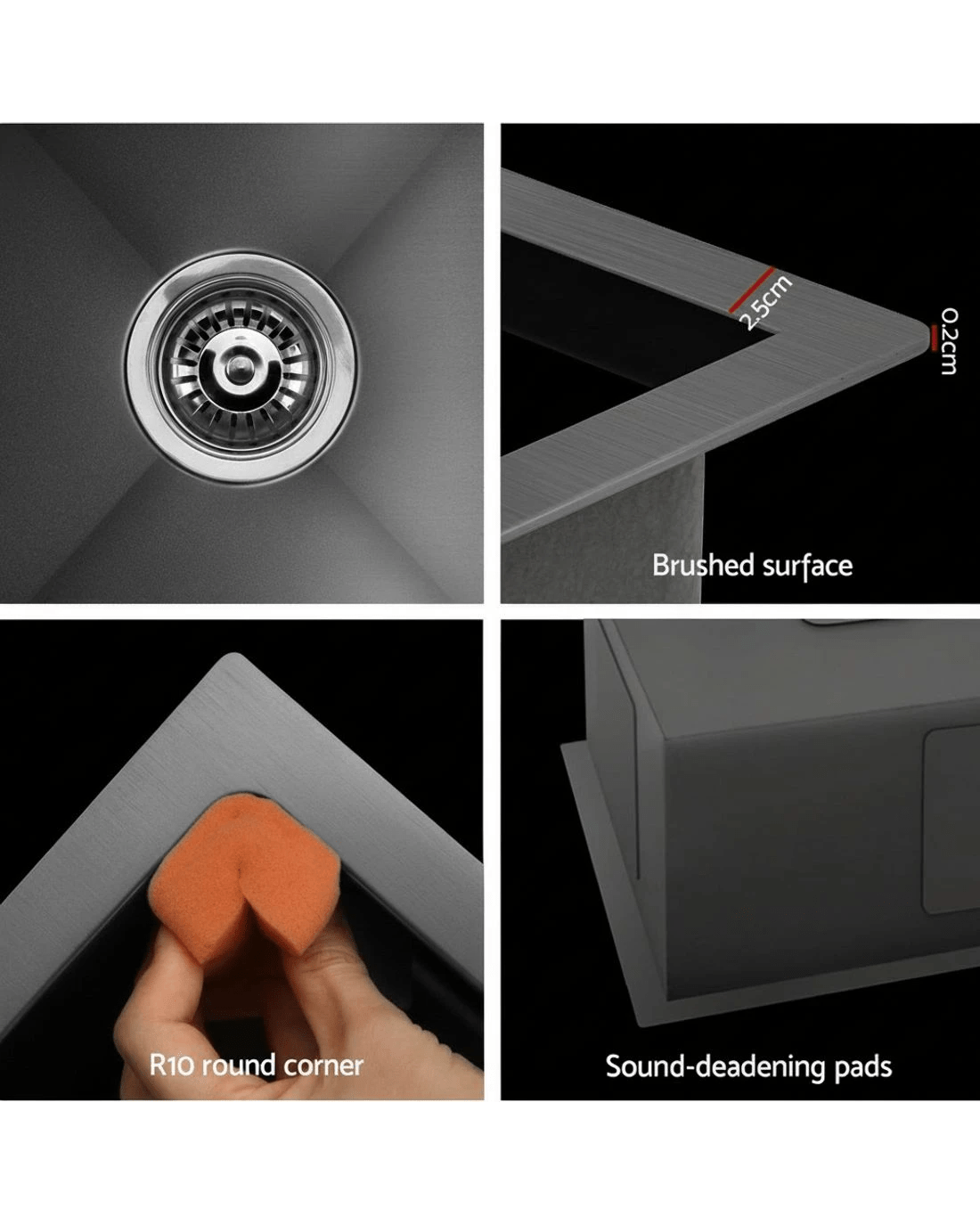 The Cefito Handmade Stainless Steel Sink is built to exacting standards so that you get the very best of quality materials and craftsmanship. It is crafted from heavy-duty food grade 304 stainless steel, unlike others that are made from inferior 201 grade or 304 imitations. Built to be scratch-resistant, oil-resistant and more importantly, bacteria-free, the silky-smooth satin-coated stainless-steel sink also features an X-flume design for easy drainage, deep and wide bowl for practicality, R10 rounded corners for safety and easy cleaning, anti-condensation paint, and sound-deadening pads. Suitable for drop-in, flush-mount or under-mount installation, our stainless steel sink should have a definitive place in your uncompromising kitchen.