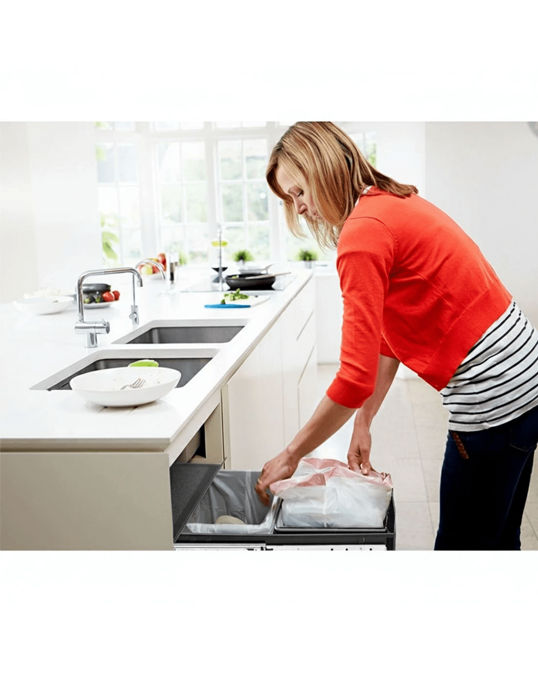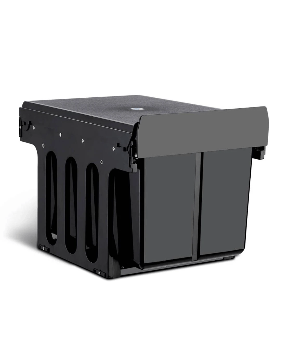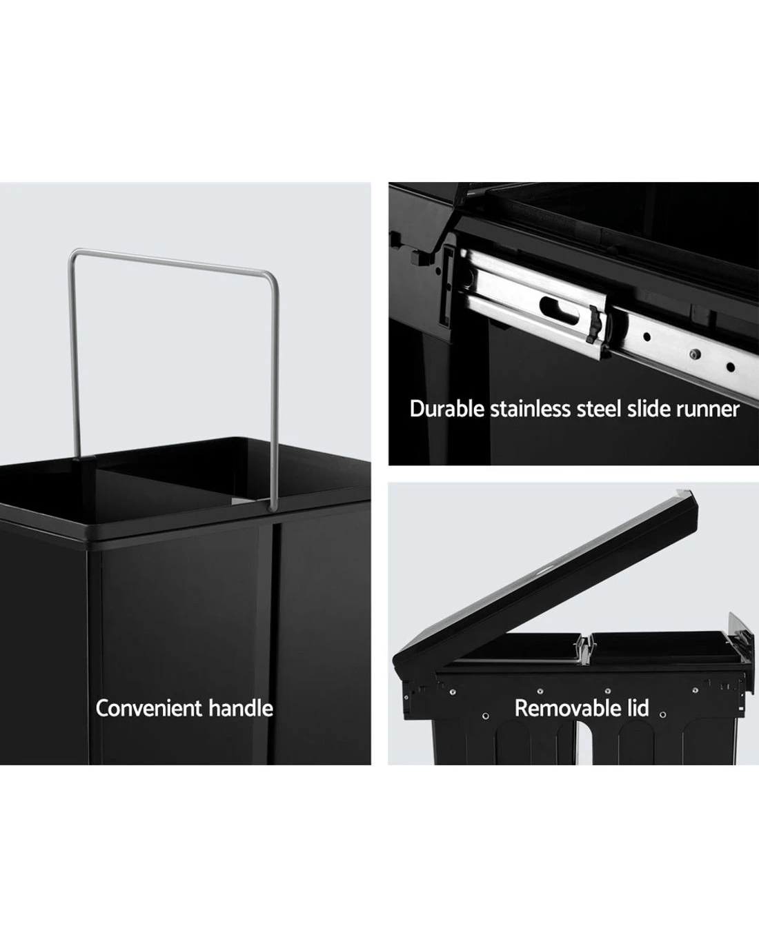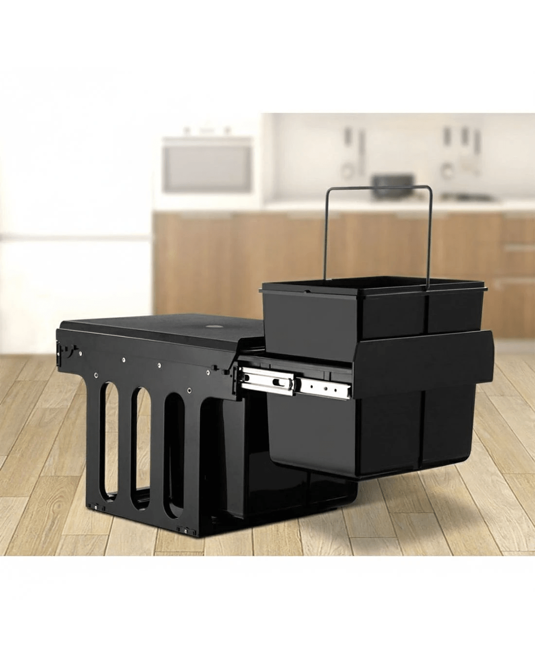 Clear your kitchen waste conveniently with our Pull-Out Bins that conceal inside your kitchen cabinet perfectly. With a 15-litre capacity for each plastic waste bin, the bins come in compartments with lids that allows you to separate your waste from each other as well as from your recycling items. The removable plastic lids help to prevent odours from leaking out and the sturdy metal runners ensure smooth sliding in and out. The plastic waste bins also come with individual metal handles for easy lifting out for garbage disposal and subsequent cleaning. It is easy to install and does not take up valuable floor space in your kitchen.