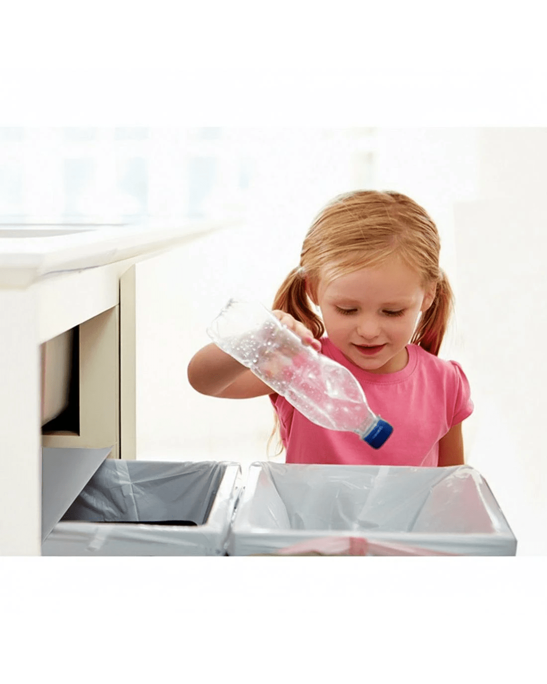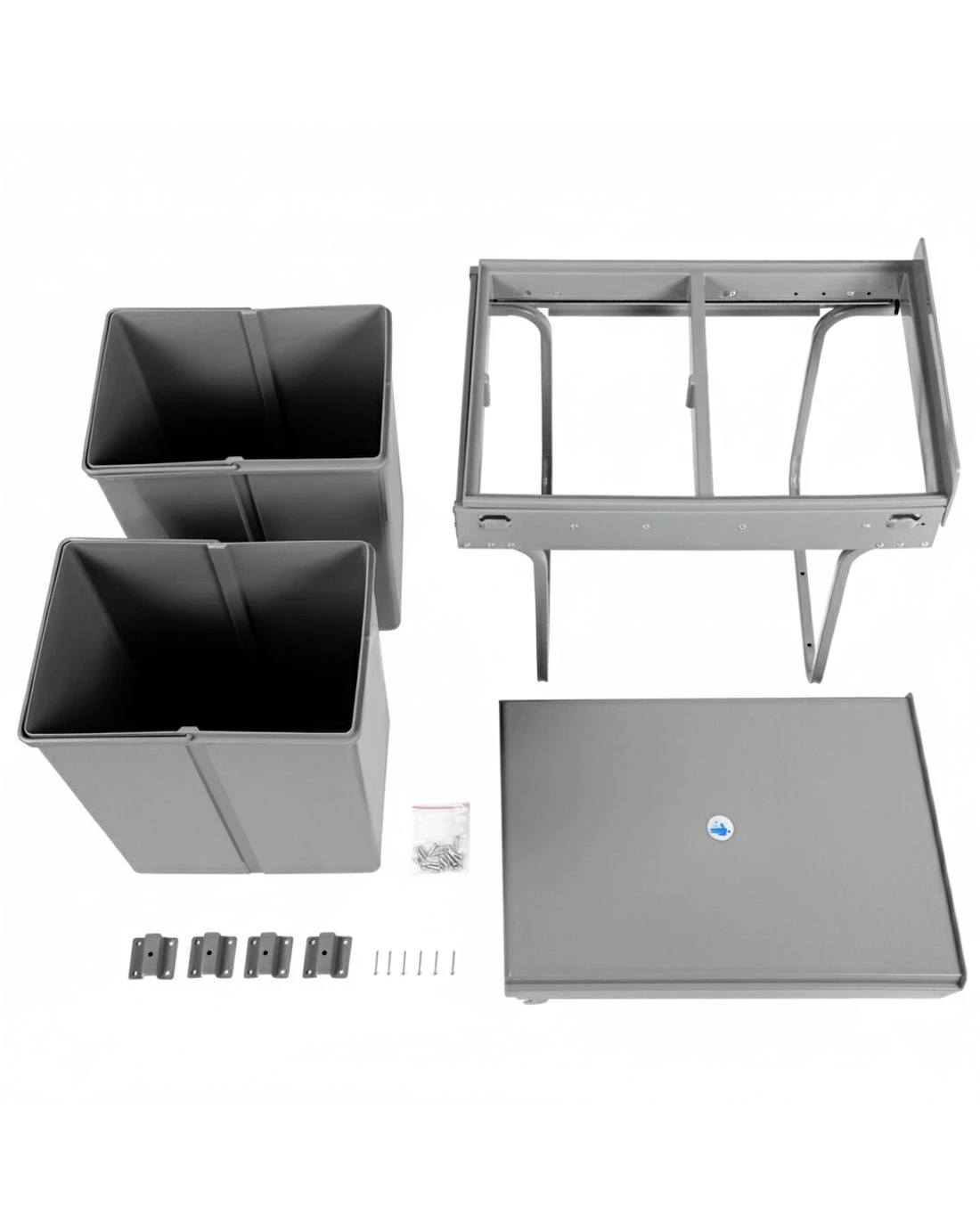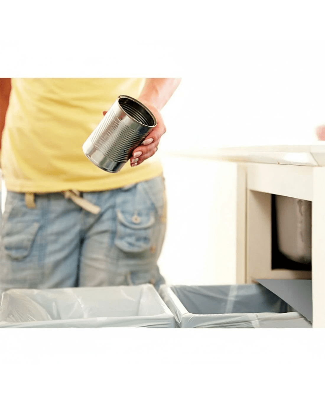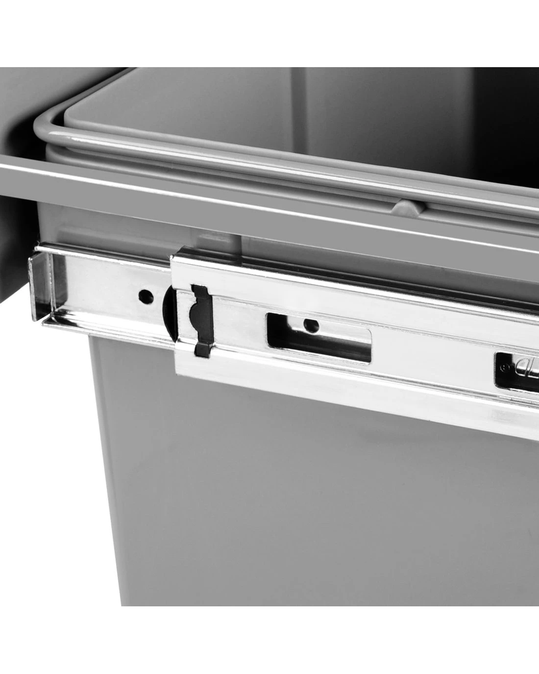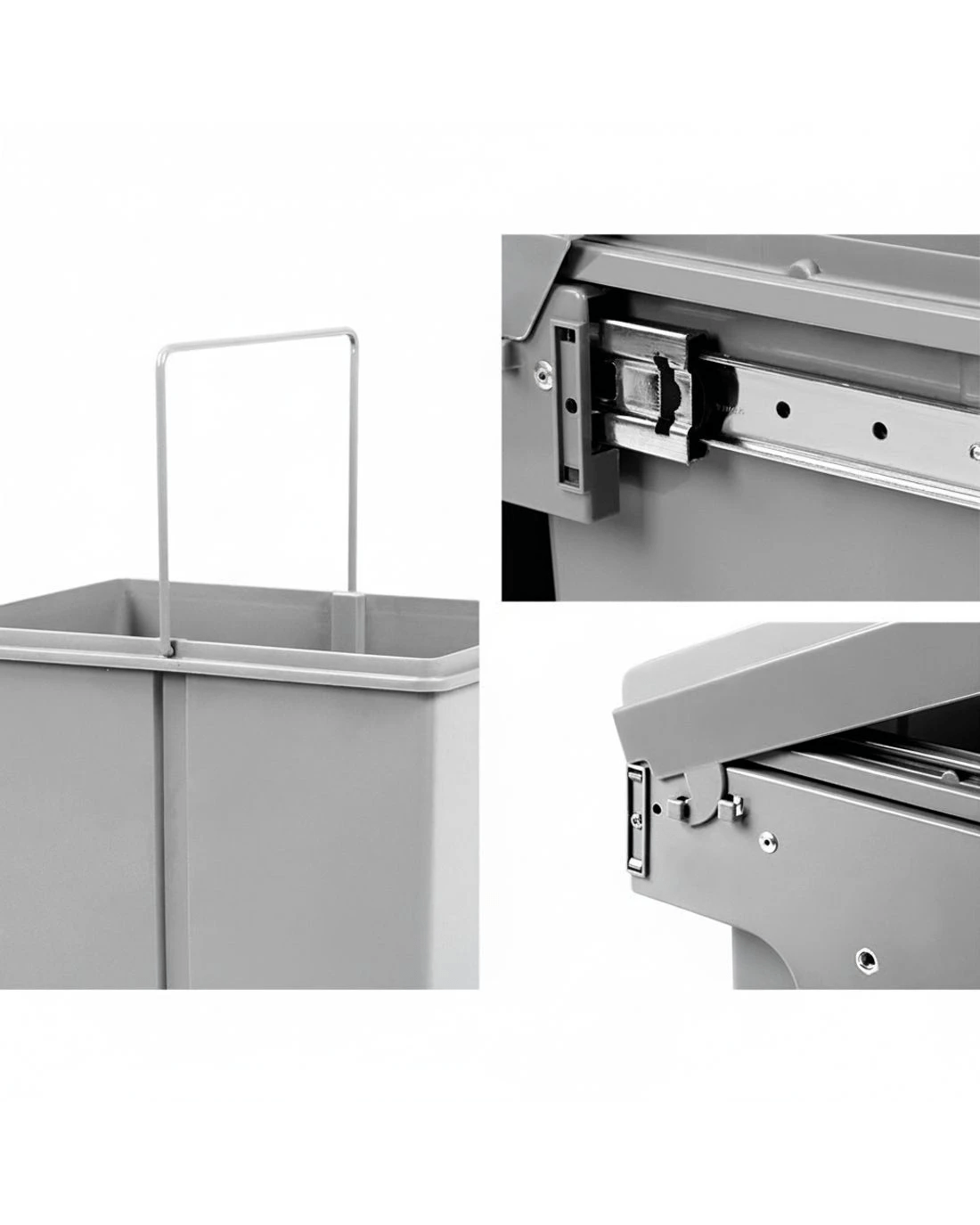Clear your kitchen waste conveniently with our Pull-Out Bin that conceals inside your kitchen cabinet perfectly. With a 20-litre capacity for each plastic waste bin, the Pull-Out Bin comes in compartments with lids that allows you to separate your waste from each other as well as from your recycling items. Included too is a under bench metal frame to hang any plastic waste bag if required. The removable plastic lids help to prevent odours from leaking out and the sturdy metal runners ensure smooth sliding in and out. The plastic waste bins also come with individual metal handles for easy lifting out for garbage disposal and subsequent cleaning. It's easy to install and does not take up valuable floor space in your kitchen. Out of sight and free of odours. Get your kitchen looking and smelling refreshingly good always with our concealed Pull-Out Bin.