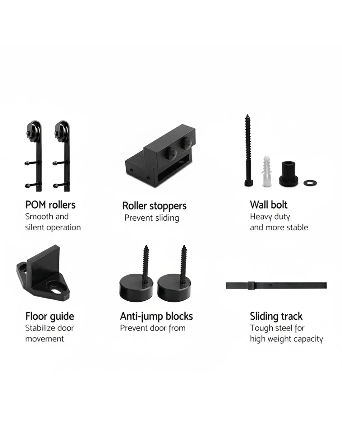 Durable and strong with an elegant matte black finish, our Sliding Door Hardware Set will go a long way in making your home unique with full of character and style.